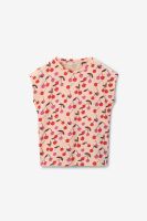 Chemise rayée beige de Sissy-Boy. La chemise a un col classique, des manches courtes, une fermeture boutonnée, des rayures verticales et une coupe droite. Le mannequin mesure 1,87 m et porte une taille M. Composition : 100% coton.