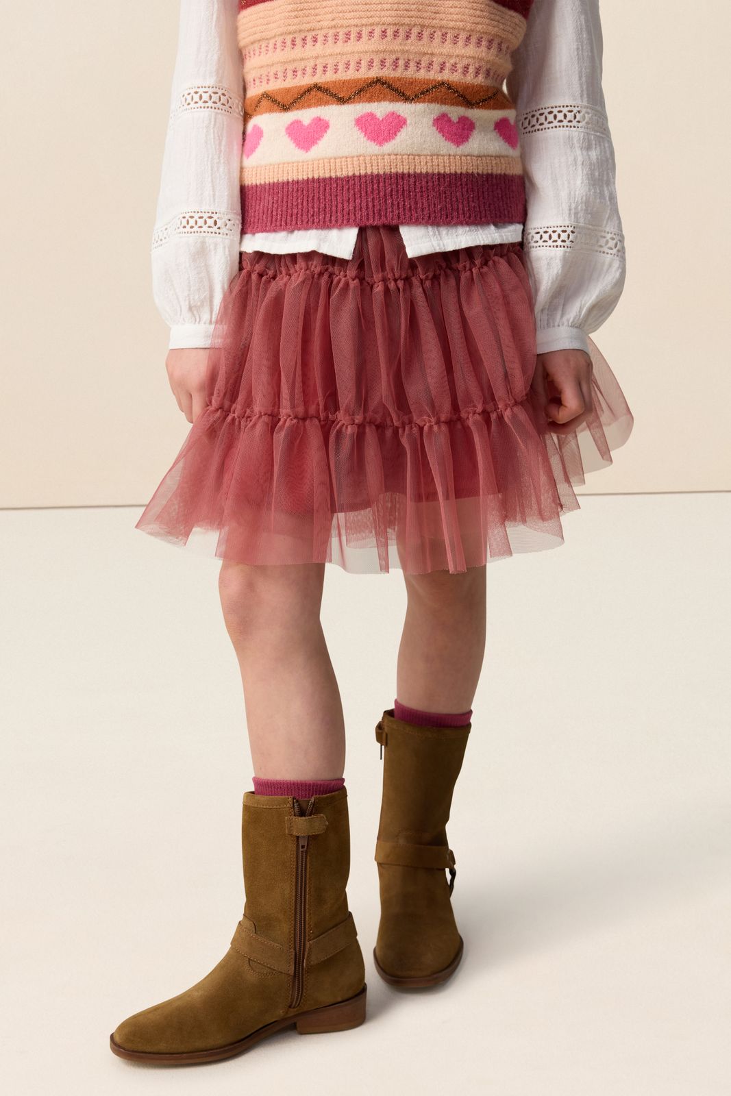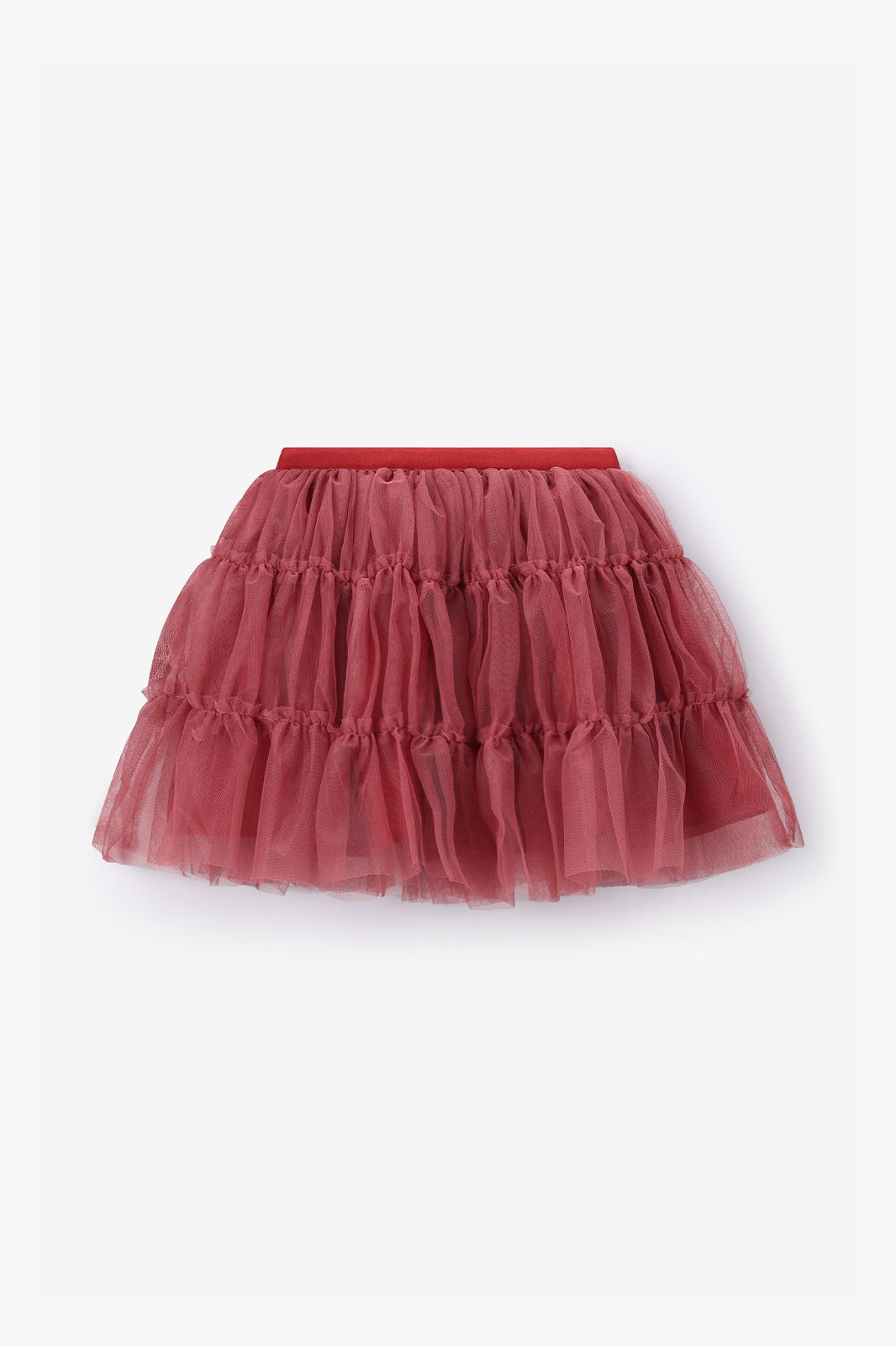 Jupe rouge de Sissy-Boy. La jupe a une ceinture élastique et une coupe trapèze. La jupe est en tulle. Composition : 100% polyester.