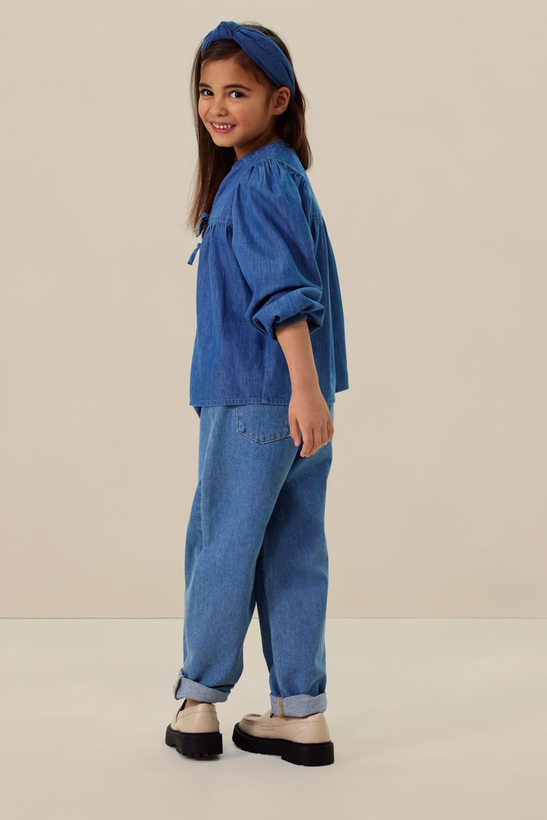 Jean pull-on bleu de Sissy-Boy. Le pantalon a une ceinture élastique, des poches latérales et des poches plaquées à l'arrière. Composition : 100% coton.