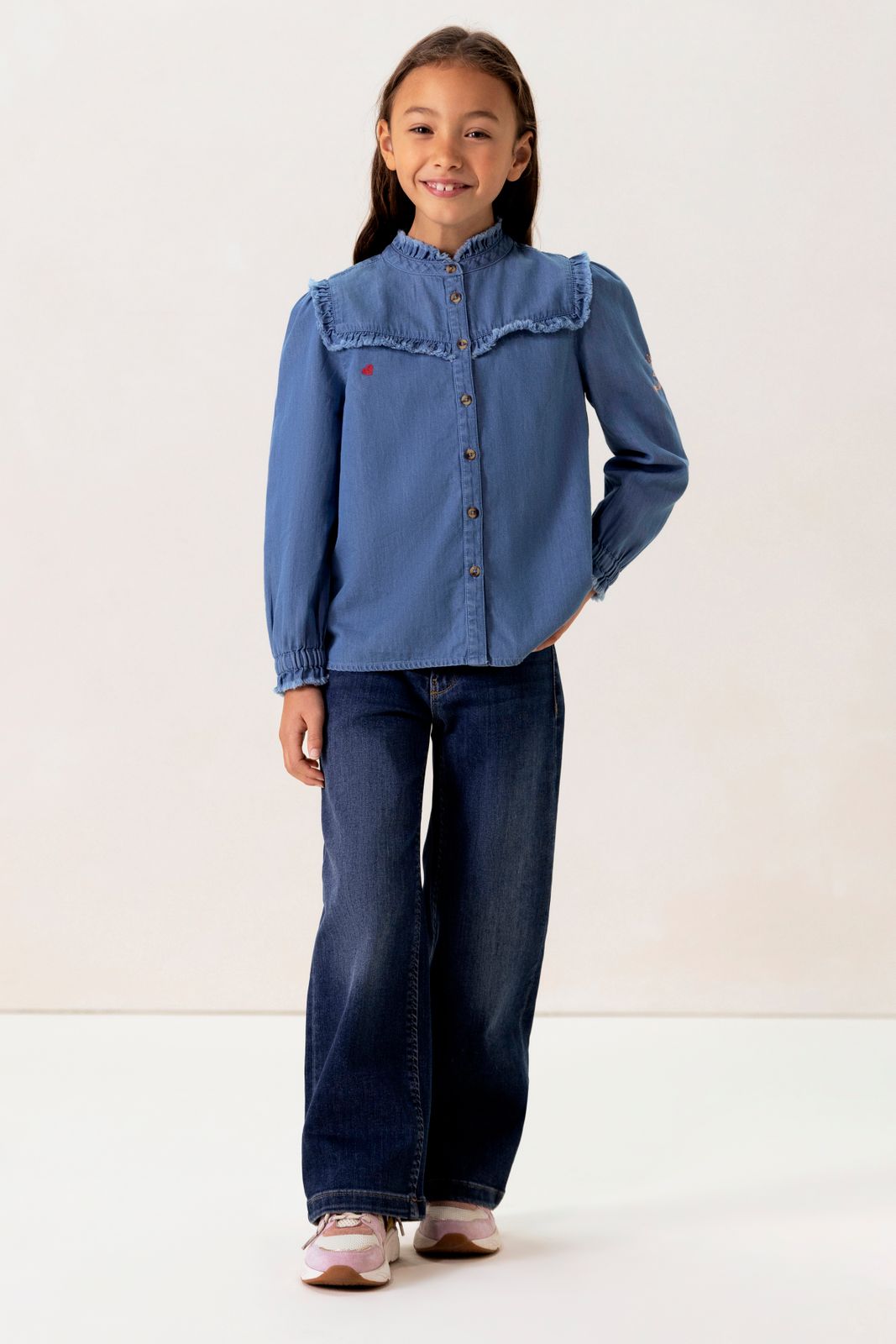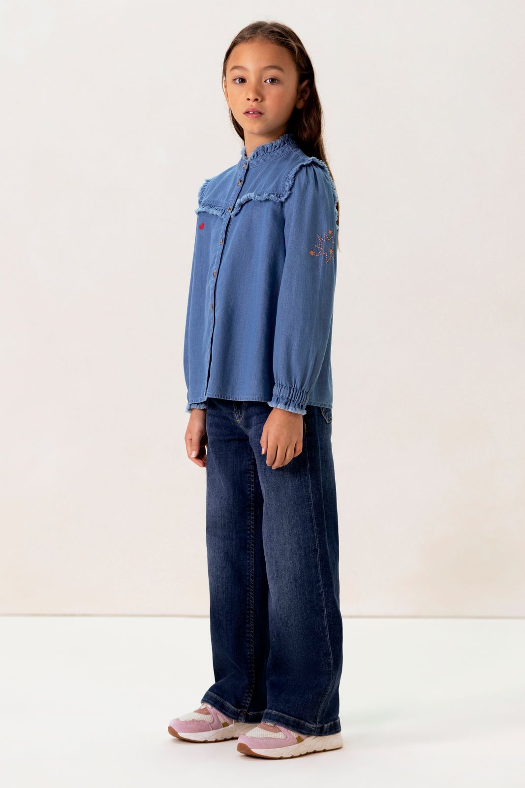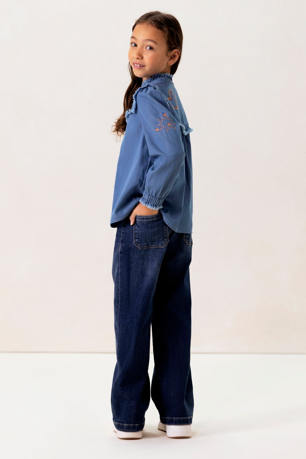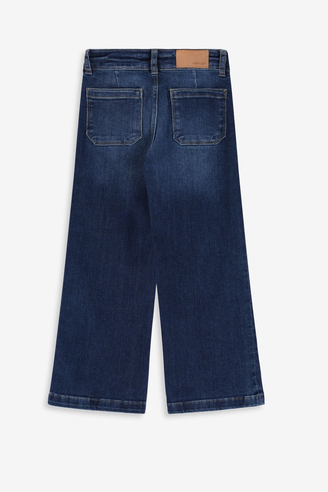 Jeans denim bleu foncé de Sissy-Boy. Le pantalon a un bouton et une fermeture éclair et des jambe larges et des passants de ceinture. Il est confectionné à partir d’une qualité du tissu denim avec un lavage bleu foncé. Matière : 82% coton, 16% polyester, 2% élasthanne.