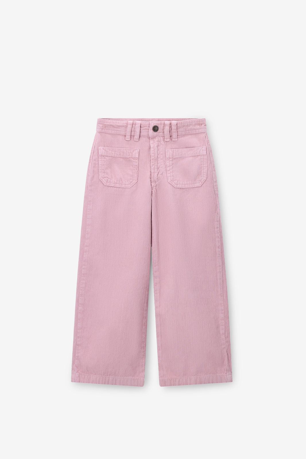 Pantalon rose de Sissy-Boy. Le pantalon a des jambes droites, des poches plaquées, des passants de ceinture et se ferme avec un bouton et une fermeture éclair. Le pantalon est en velours côtelé. Composition : 100% coton.