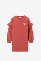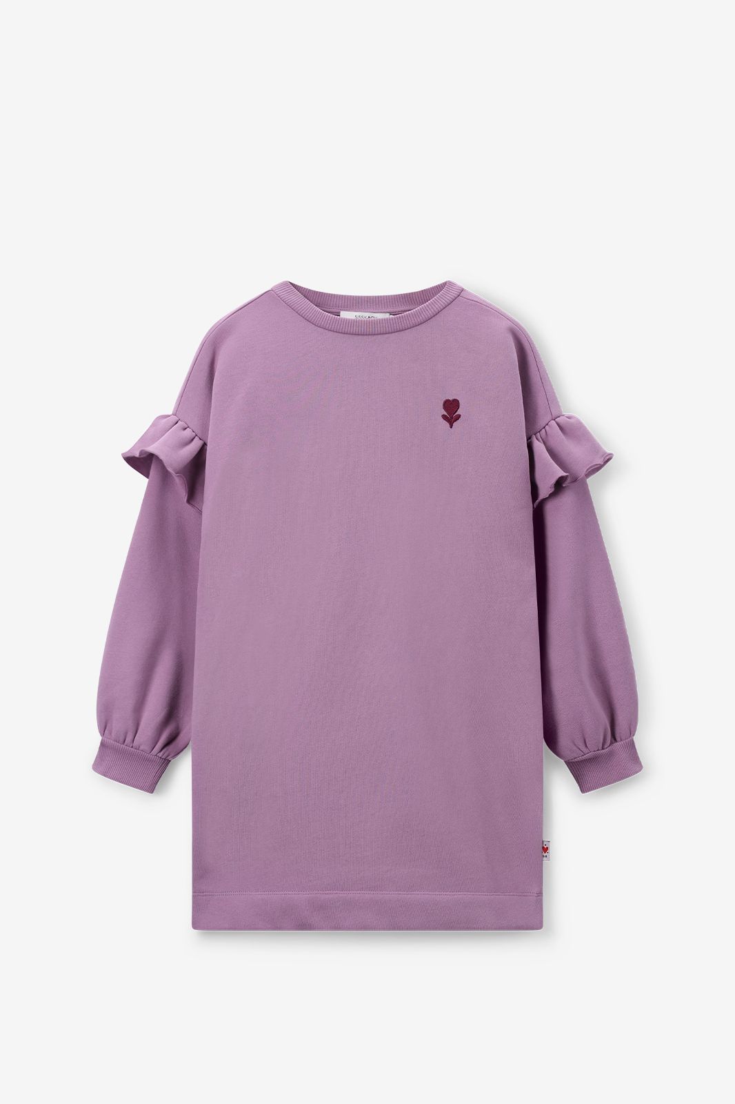Robe sweat violet clair de Sissy-Boy. La robe a des manches longues bouffantes avec épaules basses, une encolure ronde, des bords côtelés et une coupe décontractée. La robe est également dotée de volants au niveau des manches et d'un cœur brodé sur le devant. Composition : 100% coton.