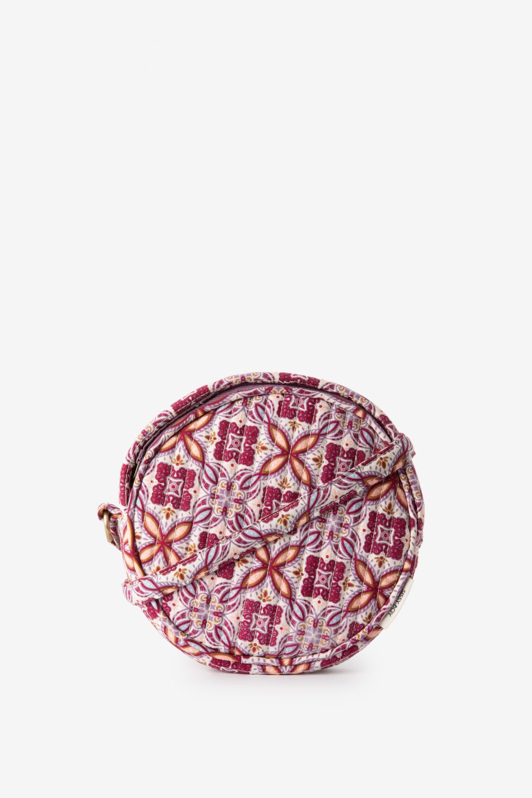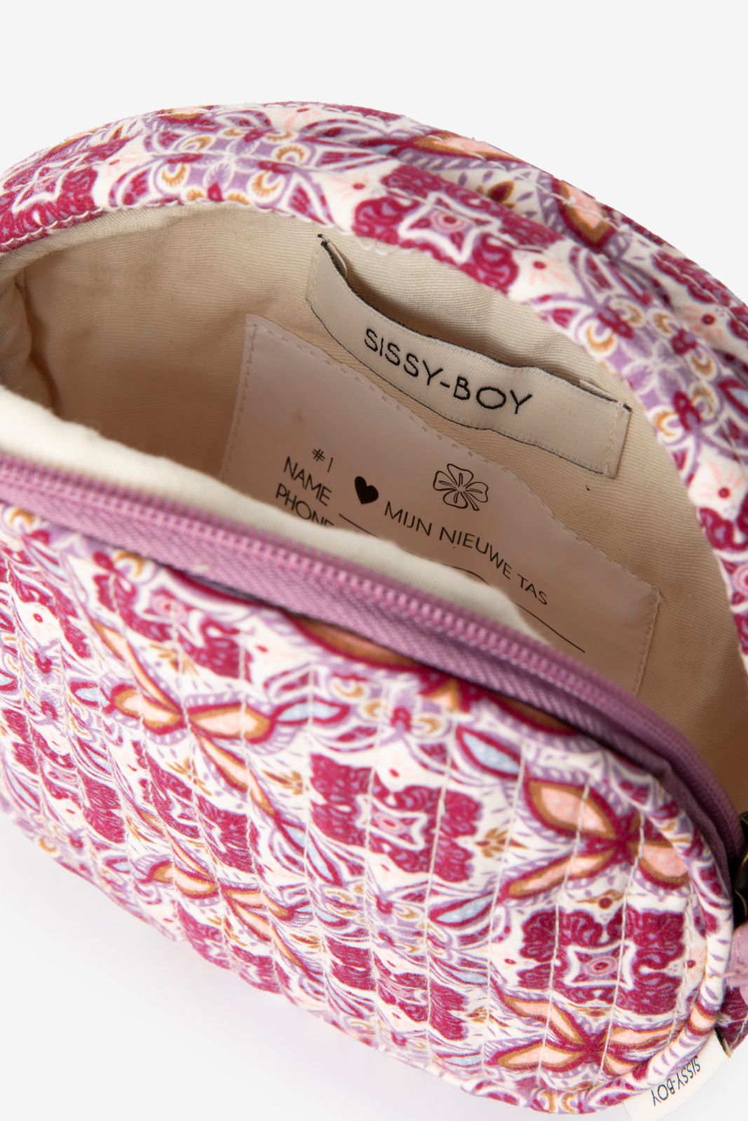 Sac bandoulière violet de Sissy-Boy. Le sac est orné d'un imprimé avec des motifs élégants. Le sac mesure 15x15x3 cm. Composition : 100% coton.