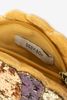 Sac doré avec paillettes de Sissy-Boy. Le sac dispose d'un grand compartiment intérieur, d'une fermeture éclair et d'une bandoulière amovible. Le sac est en forme de coquillage avec des paillettes colorées sur le devant. Composition : 100% coton.