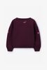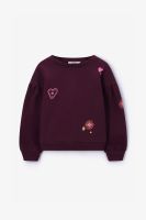 Sweat rouge foncé avec broderies de Sissy-Boy. Le sweat a des manches longues bouffantes avec épaules basses, un col rond, des bords côtelés et une coupe décontractée. Le sweat a également des détails brodés roses. Composition : 100% coton.