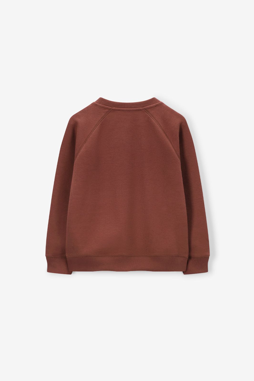 Sweat marron foncé de Sissy-Boy. Le sweat a des manches longues, un col ras du cou montant, des bords côtelés et une coupe régulière. Composition : 50% coton, 50% polyester.