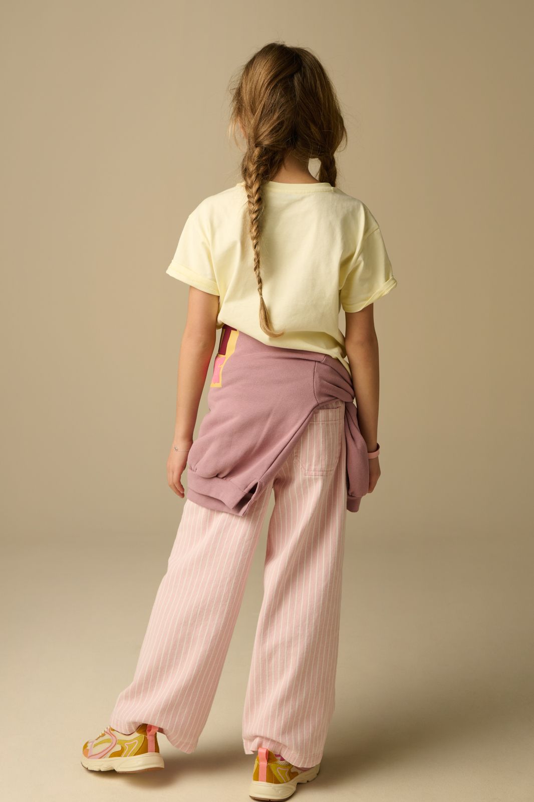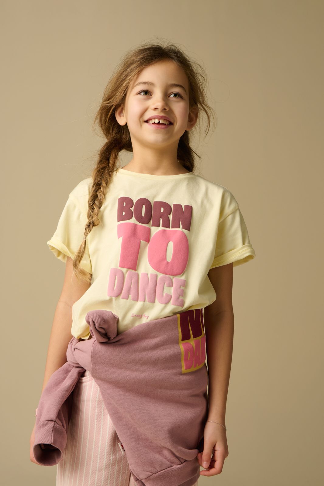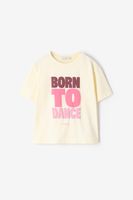 T-shirt jaune clair avec illustration de Sissy-Boy. Le t-shirt a des manches courtes, un col rond et une coupe ample. Le t-shirt est également doté d'une illustration composée d'un texte rose. Composition : 100% coton.
