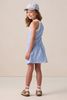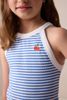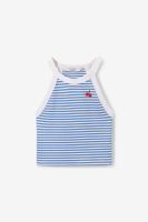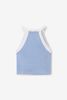 T-shirt bleu foncé de Sissy-Boy. Le t-shirt a un col rond, des manches courtes, une coupe régulière et un logo Sissy-Boy blanc sur la poitrine. Le mannequin mesure 1,87 m et porte une taille M. Composition : 100% coton.