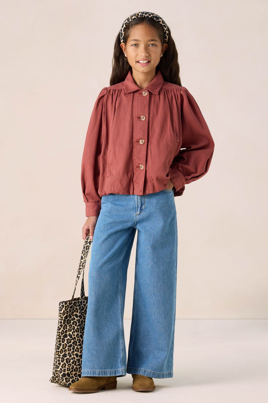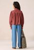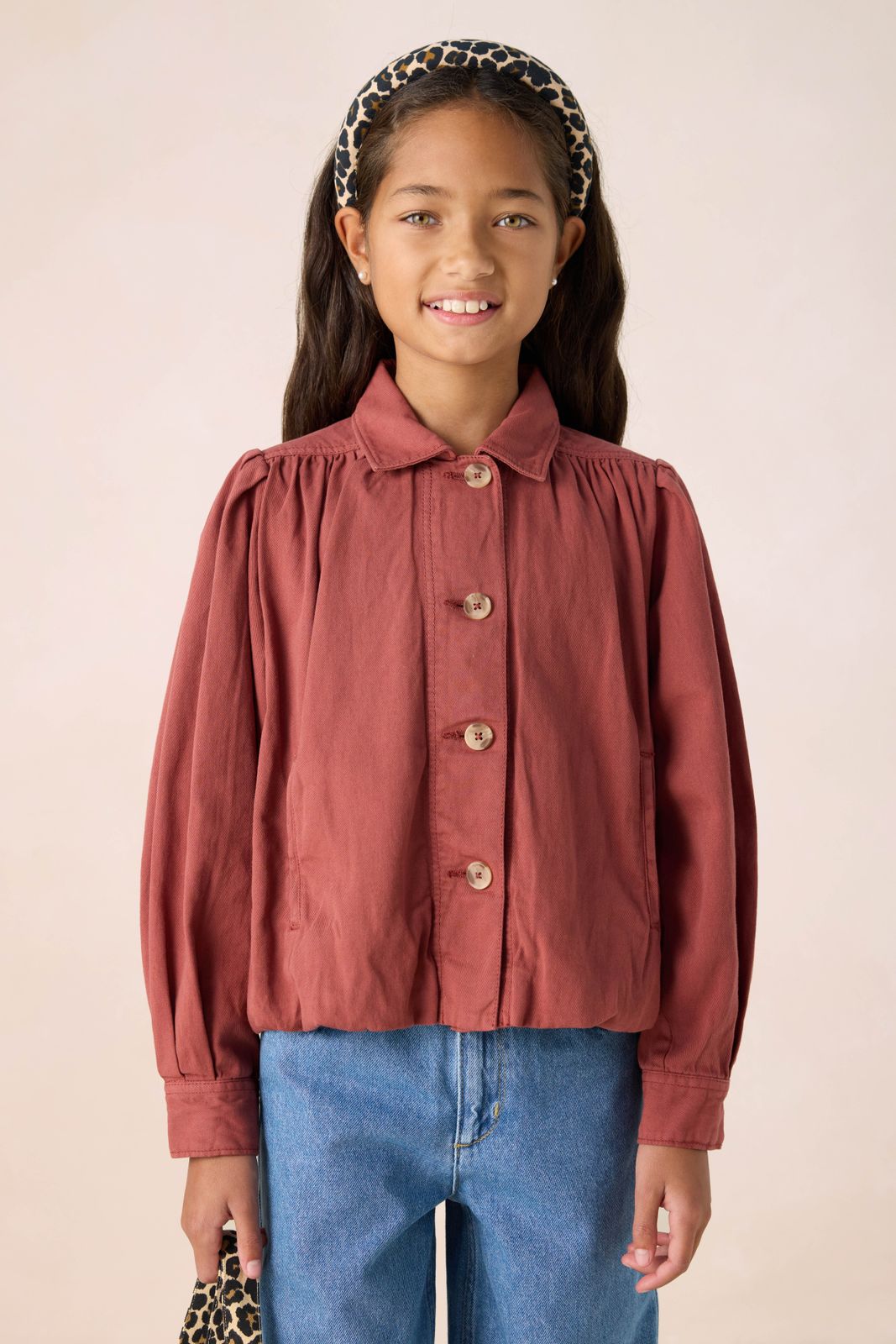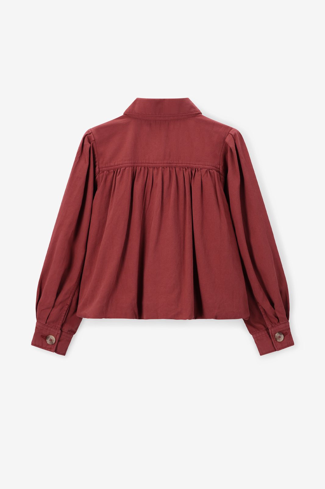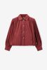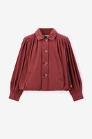 Veste rouge de Sissy-Boy. La veste a une coupe décontractée, des manches longues ballon, un col, des poches latérales, des boutons et des plis au niveau des épaules et des manches. Composition : 100% coton.