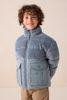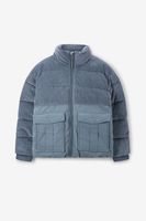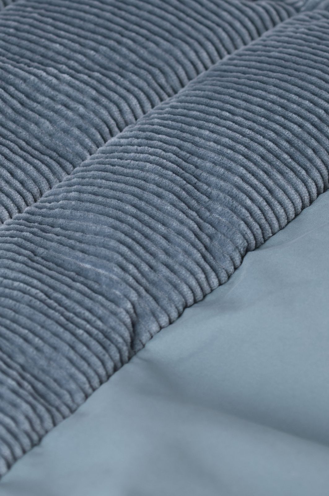 Veste bleue de Sissy-Boy. La veste a des manches longues, un col montant, une fermeture éclair, deux poches plaquées et une coupe décontractée. La veste est chaude et protège des intempéries hivernales. La partie supérieure de la veste est en velours côtelé. Composition : 100% polyester.