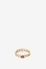 Bague chaîne plaqué or de Sissy-Boy. La bague de couleur dorée a un design chaîne ajourée et est ornée d'une pierre marron sur le dessus. Évitez tout contact avec des produits cosmétiques (parfum, laque, démaquillant, dissolvant, huile de corps, crème solaire, gel désinfectant pour les mains et déodorant). Ne portez pas les bijoux sous la douche, dans le bain ou lorsque vous vous baignez. Le chlore, en particulier, peut endommager ou décolorer de façon permanente les bijoux. Dimensions : 5x4x2,5 mm. Composition : 100% acier.