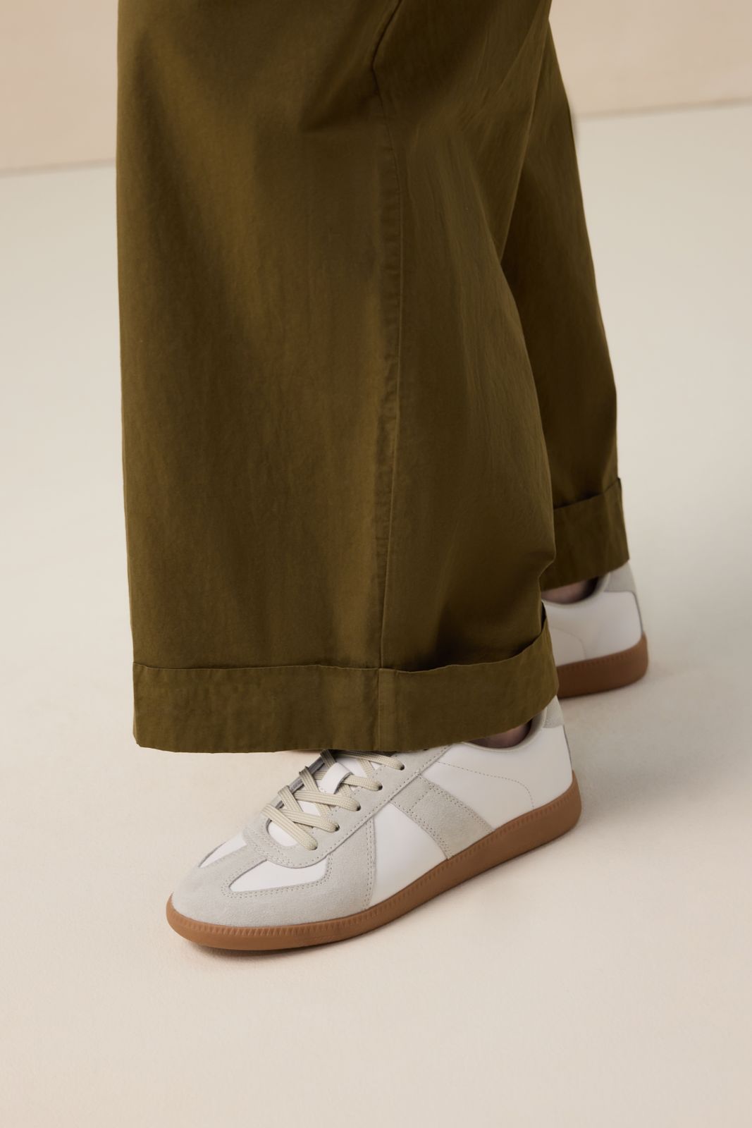 Baskets blanches de Sissy-Boy. Les baskets sont en cuir et en daim. Les baskets ont une semelle basse et se ferment avec des lacets. Composition : 50% cuir, 50% daim.