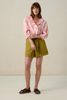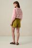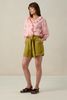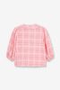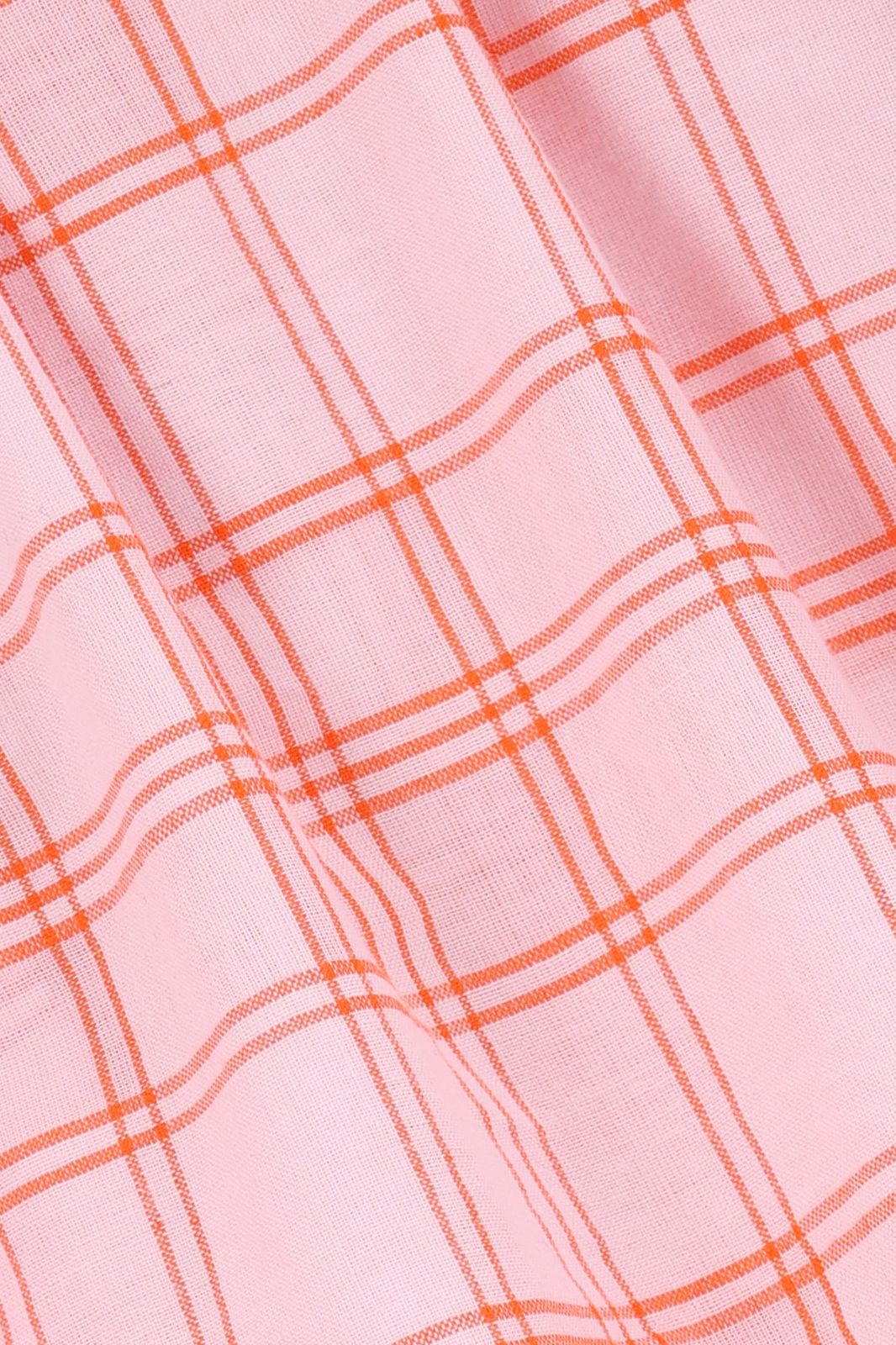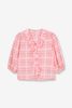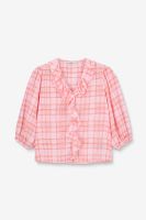 Blouse rose clair de Sissy-Boy. La blouse a un col V, des manches longues et une fermeture boutonnée sur le devant. La blouse ample a des volants le long du col et des boutons et est dotée d'un motif à carreaux rose et orange. Composition : 100% coton.