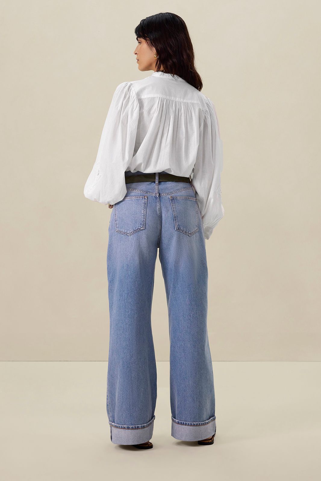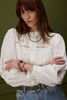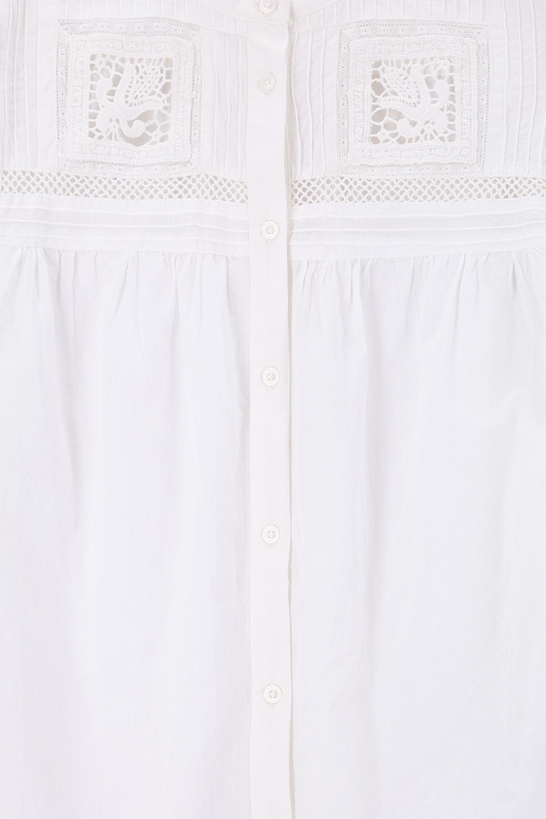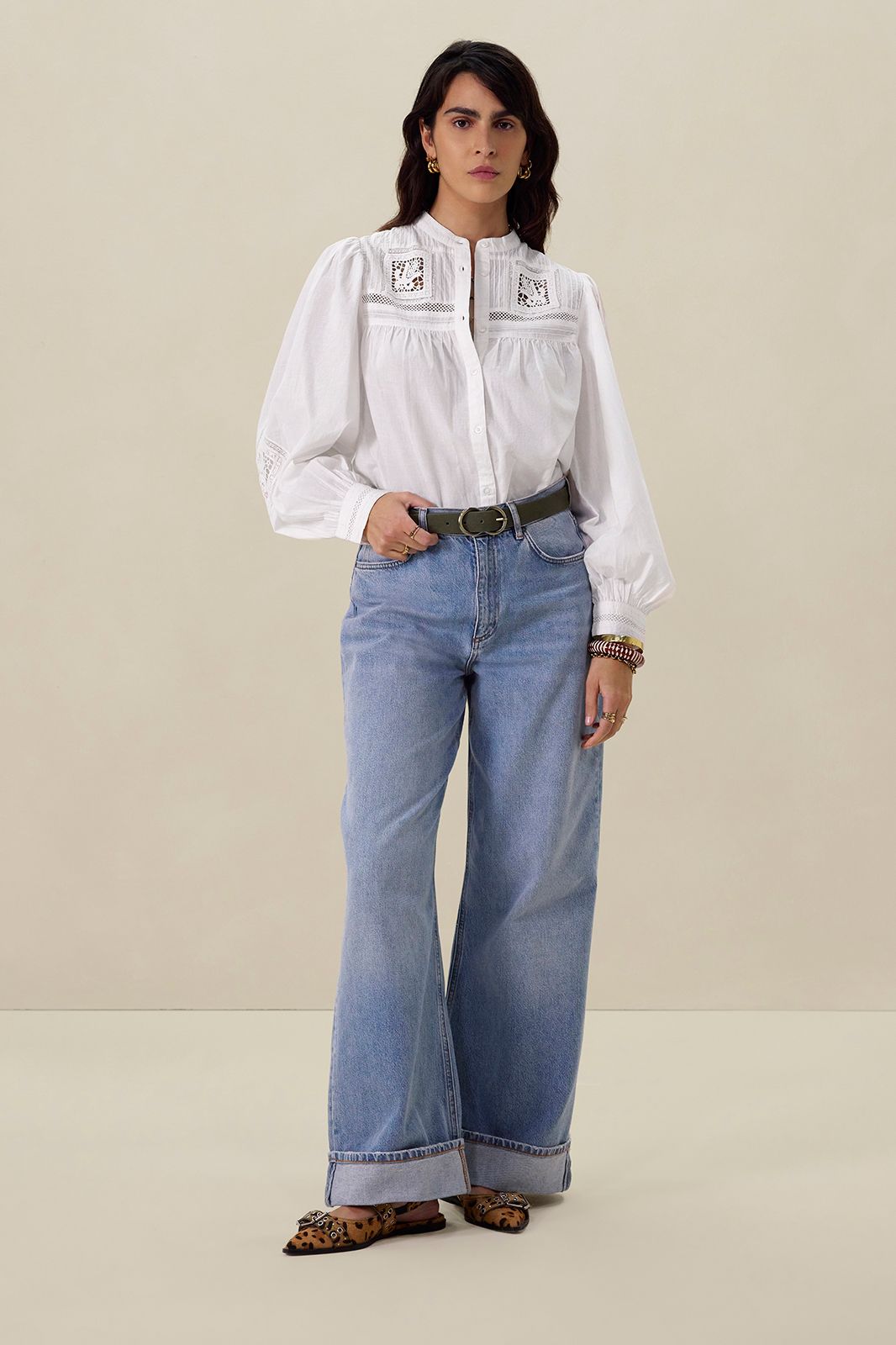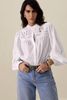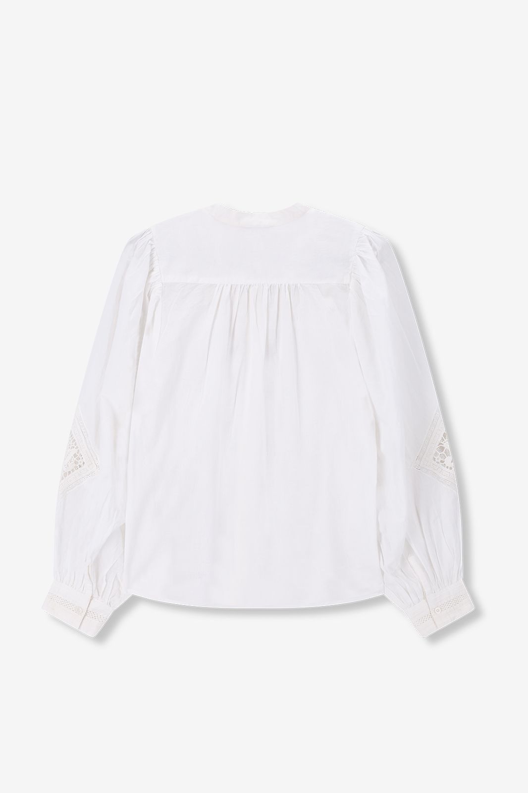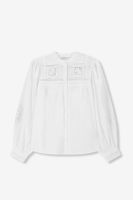 Blouse blanche avec détails en dentelle de Sissy-Boy. La blouse a des manches longues bouffantes, une encolure ronde et une coupe décontractée. L'article a également des fronces le long de la dentelle. Composition : 100% coton.