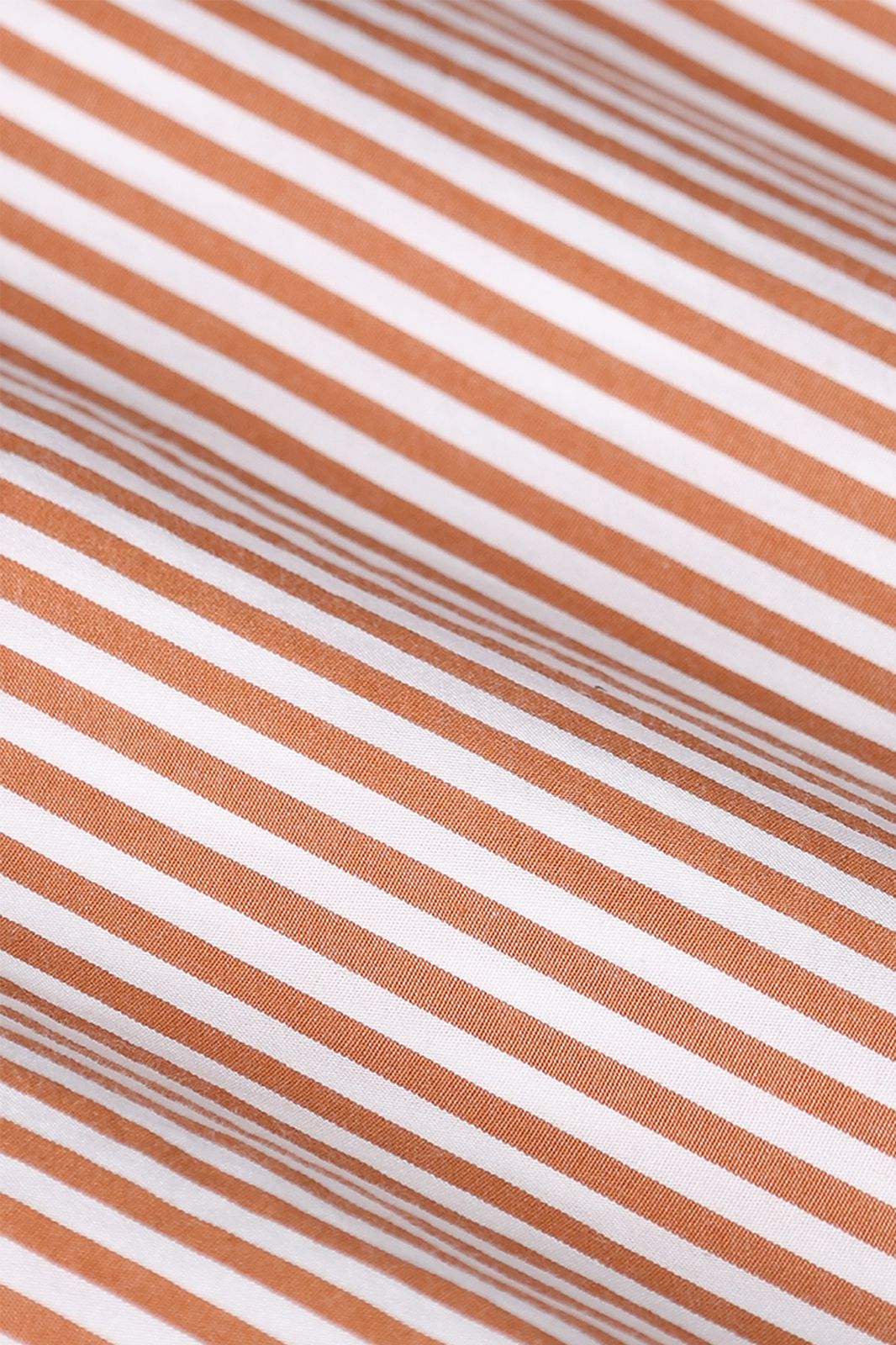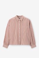 Blouse rayée marron clair de Sissy-Boy. La blouse a des manches longues bouffantes, un col montant, une fermeture boutonnée et une coupe régulière. La blouse couleur marron rouille est également dotée d'une poche poitrine et d'un motif rayé. Composition : 100% coton.