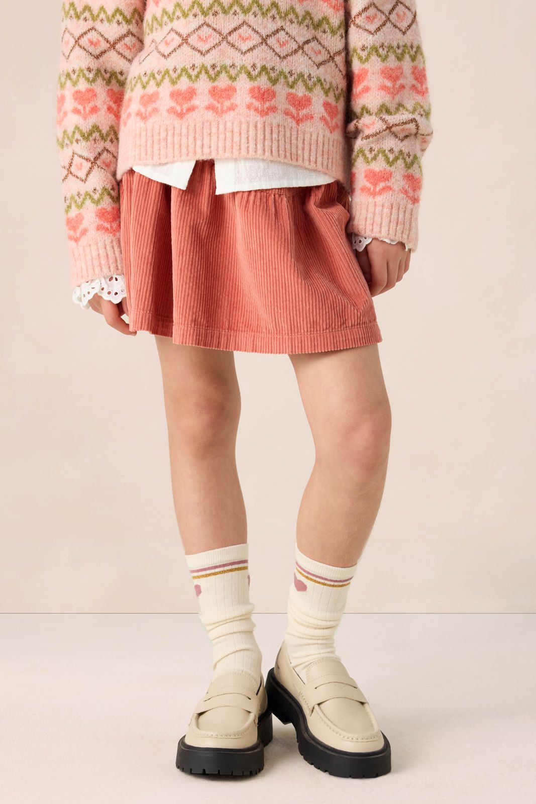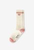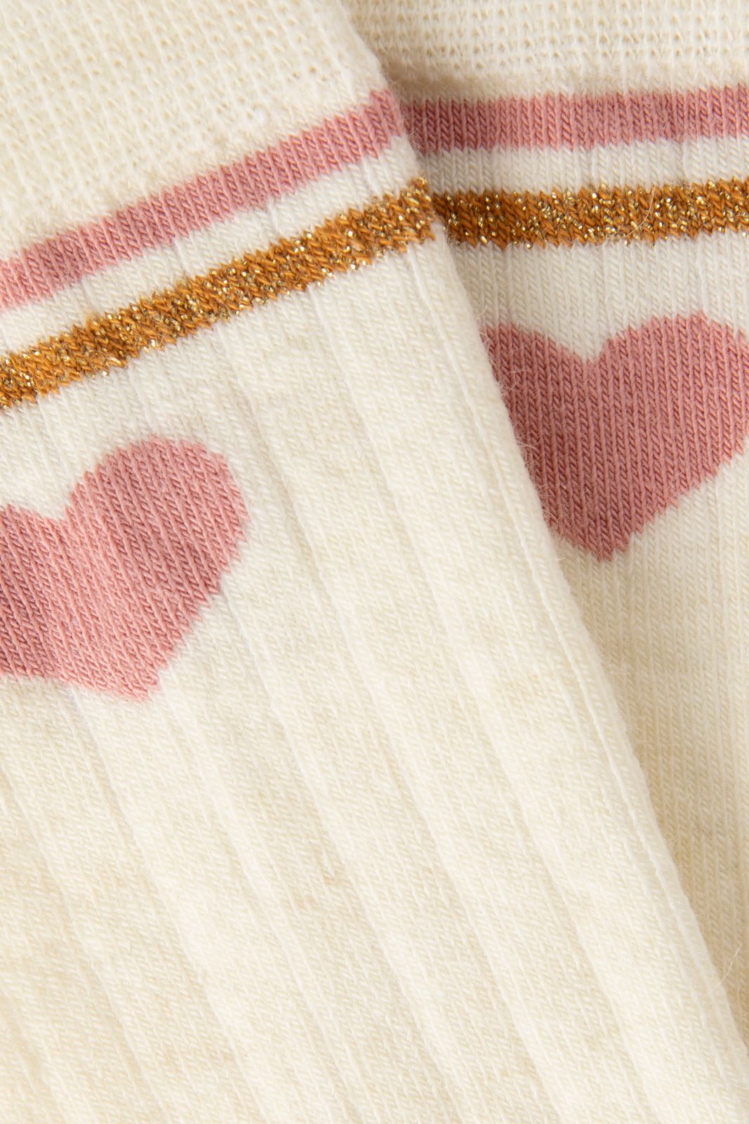 Chaussettes blanches de Sissy-Boy. Les chaussettes sont dotées de 2 rayures sportives roses et d'un cœur rose sur la partie supérieure. Composition : 50% laine, 50% coton.