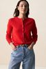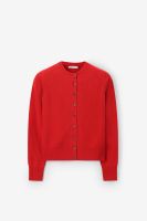 Gilet rouge de Sissy-Boy. Le gilet a des manches longues, une fermeture boutonnée, un col V, des bords côtelés et une coupe régulière. Le gilet rouge vif est en laine douce. Composition : 50% laine mérinos, 50% laine de yack.