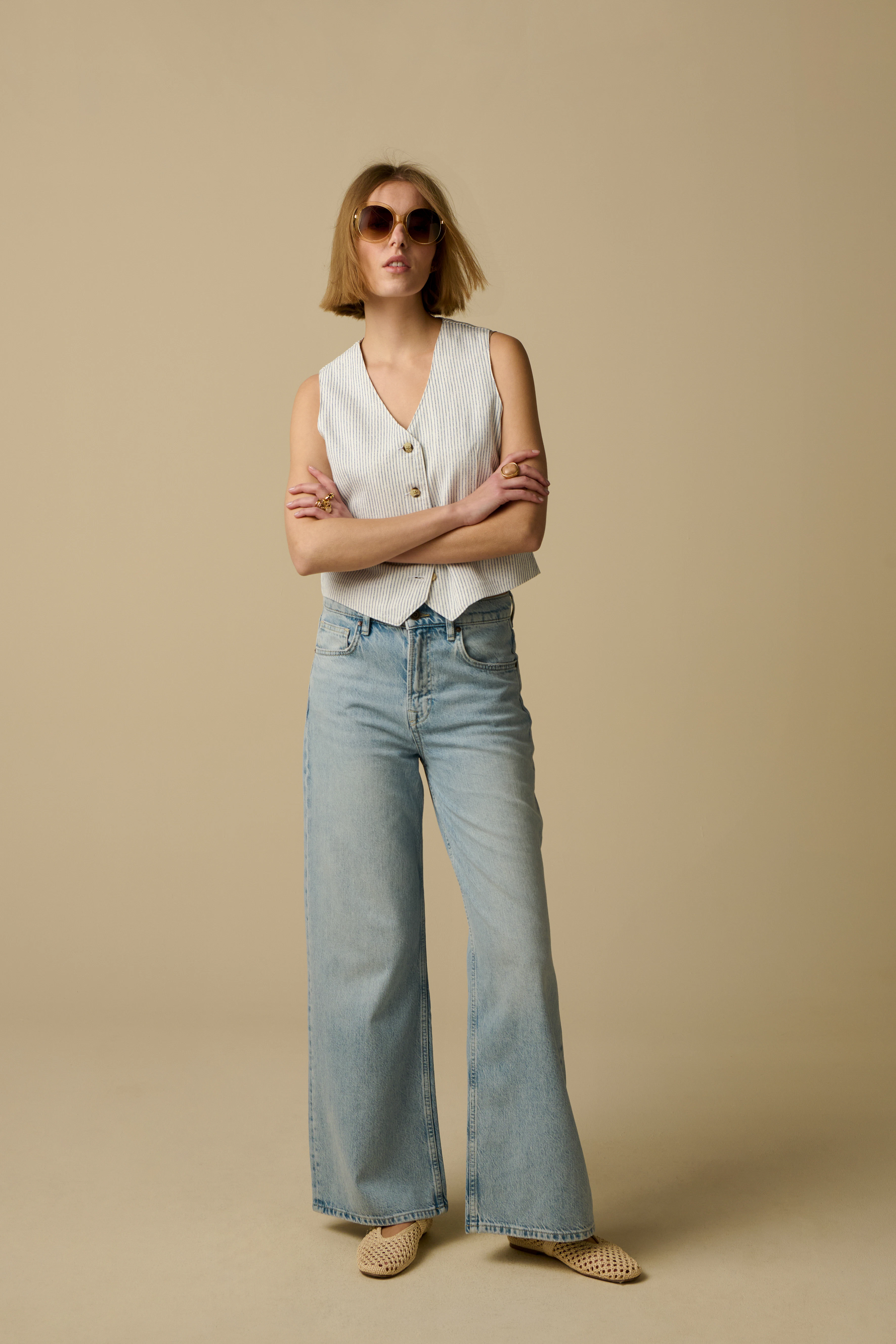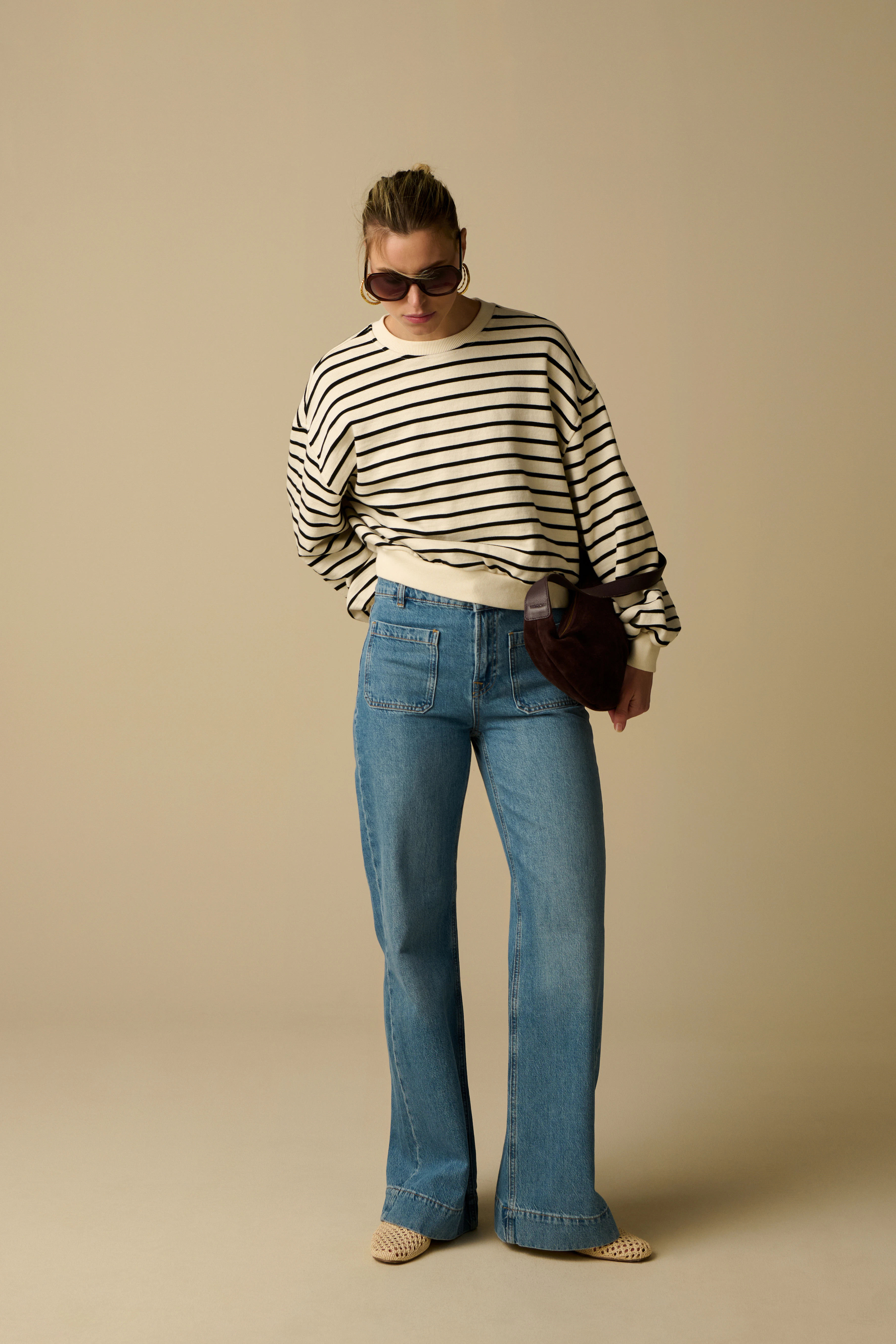 Avec un jean, tu fais toujours le bon choix, quelle que soit l’occasion pour laquelle tu cherches une tenue. De plus, avec un jean et un T-shirt basique, tu ne peux pas te tromper. Cet essentiel ultime ne doit pas manquer dans ta garde-robe. Bien que tous les jeans aient quelque chose en commun, à savoir le tissu denim, il existe aujourd’hui une infinité de modèles. Pense par exemple au jean flared. Il est ajusté au niveau des cuisses et la jambe s’évase vers le bas. Le wide leg est également une variante du pantalon flared. Ce modèle est aussi appelé coupe flair et se caractérise par une largeur ample sur toute la longueur de la jambe. Le straight leg, également appelé regular fit, a une coupe droite et simple. C’est un modèle classique et intemporel que tu peux combiner à l’infini. Et enfin, le cropped jean. Ce pantalon est plus court qu’un jean classique. La jambe arrive souvent juste au-dessus de la cheville. Outre le choix entre une coupe skinny ou loose, il existe aussi trois hauteurs de taille différentes : high waist, medium waist et low waist. Une taille haute crée de la longueur et donne visuellement des jambes plus longues. Autre avantage, avec un modèle high waist, tu n’as pas à t’inquiéter d’un jean qui glisse vers le bas. Le jean mid rise possède une hauteur de taille moyenne. Et de retour après avoir disparu quelque temps, le jean low rise.