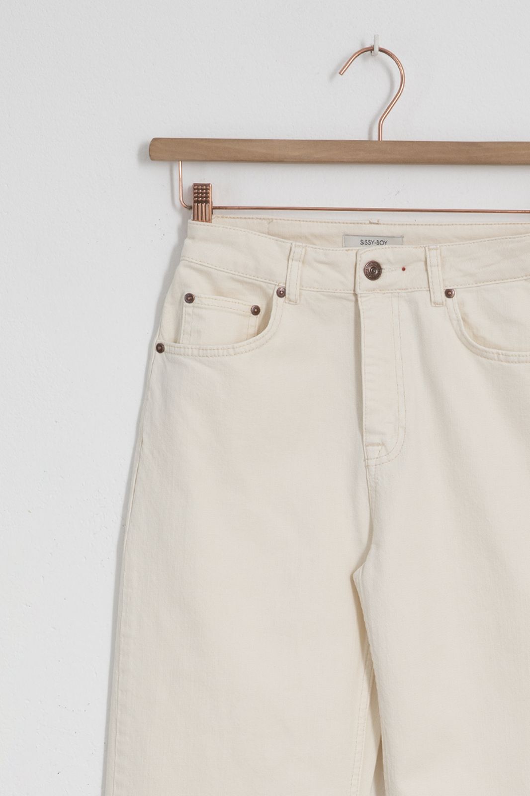 Jeans jambe large de Sissy-Boy. Ce jean à jambes larges droites a une silhouette flatteuse ET tendance. Il a 5 poches, dont 3 à l'avant et 2 à l’arrière. Il a une taille mi-haute.