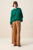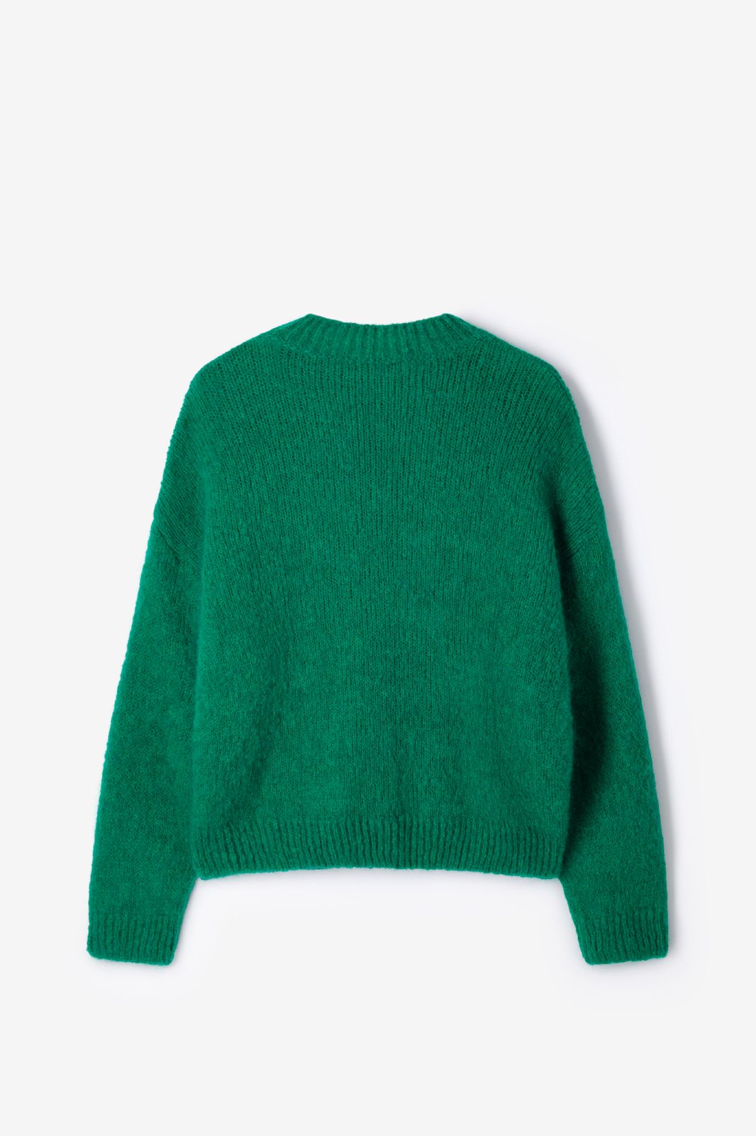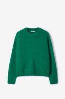 Pull vert foncé en mohair de Sissy-Boy. Le pull a des manches longues bouffantes avec épaules basses, un col rond, des bords côtelés et une coupe décontractée. Le pull est en matière tricotée. Composition : 53% mohair, 45% polyamide, 2% élasthane.