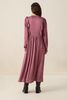 Robe rouge foncé de Sissy-Boy. La robe longue a des manches longues bouffantes, un col montant, une fermeture boutonnée, une ceinture à la taille et une coupe régulière. La robe est également dotée d'un imprimé bohème et de volants. Composition : 100% viscose.
