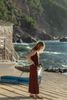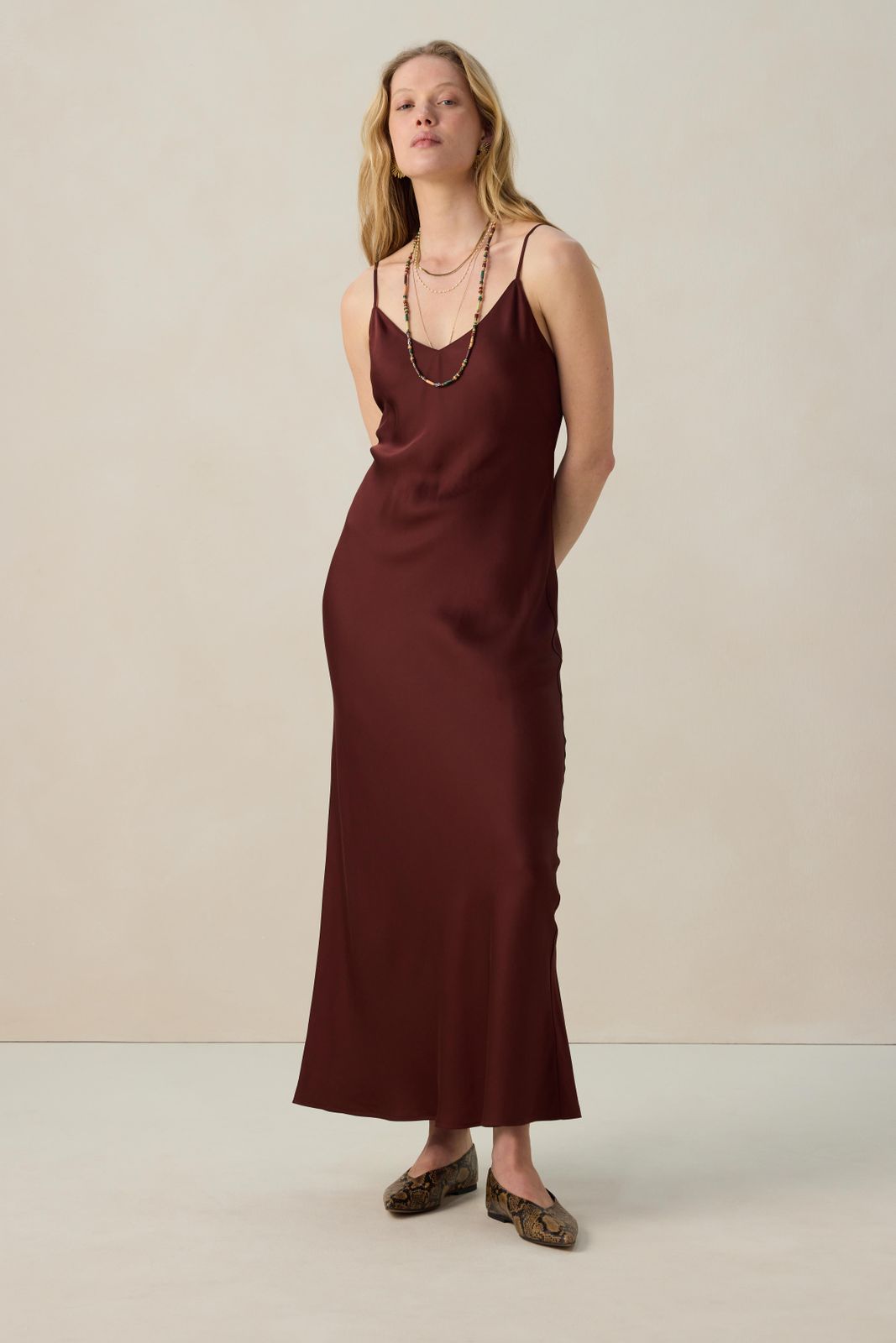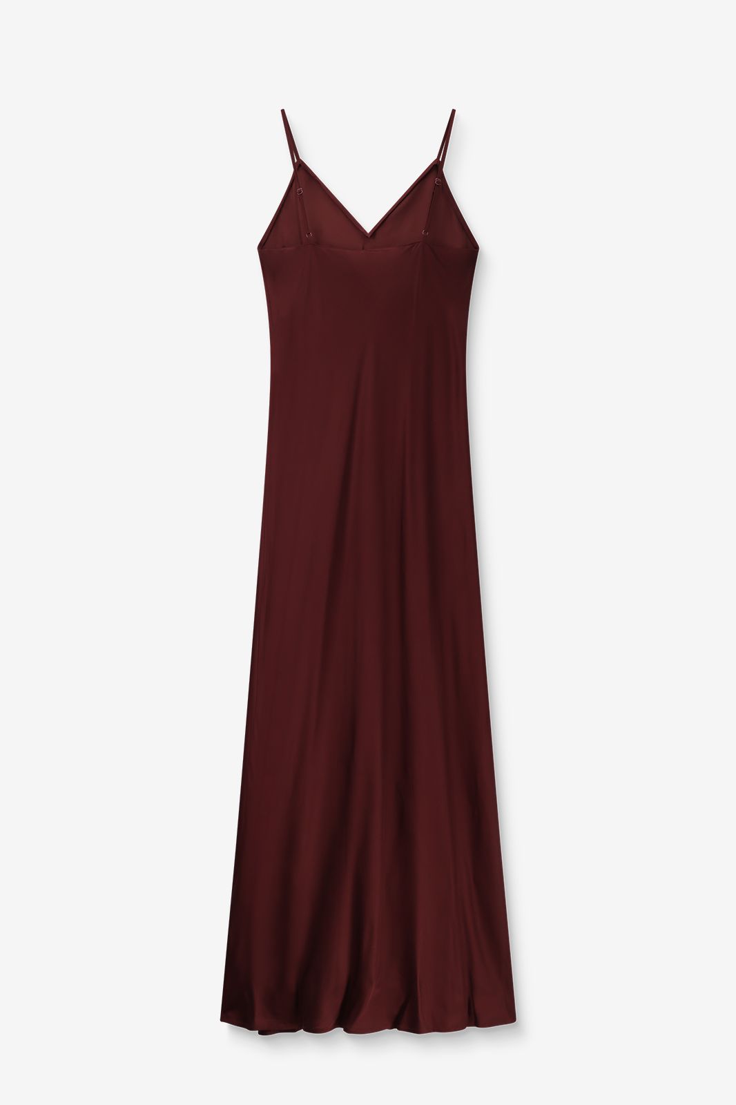 Robe longue rouge foncé de Sissy-Boy. La robe a des bretelles fines et une coupe droite. Composition : 100% viscose.