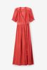 Robe longue rouge de Sissy-Boy. La robe portefeuille a des manches courtes et un col V. Le tissu est plissé à partir de la ceinture. Composition : 100% polyester.