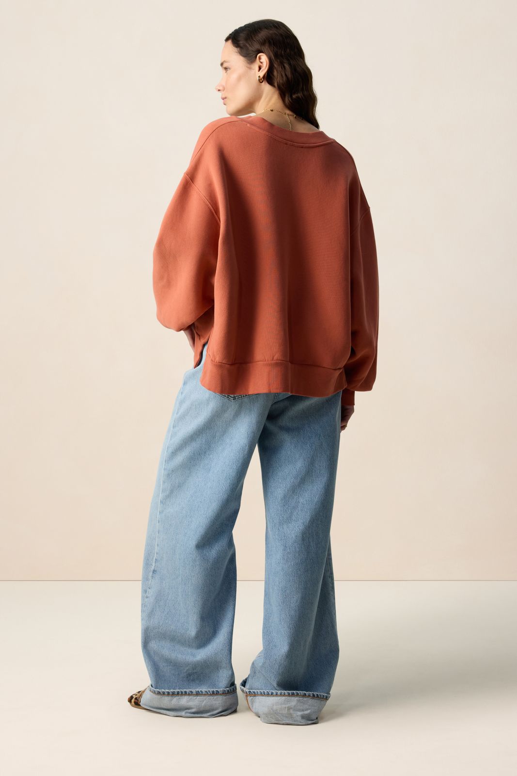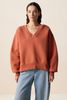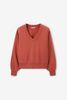 Sweat rouge de Sissy-Boy. Le sweat a des manches longues avec épaules basses, un col V, des bords côtelés et une coupe ample. Composition : 100% coton.