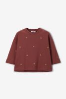 Sweat marron foncé de Sissy-Boy. Le sweat a des manches longues, un col rond et une coupe régulière. Le sweat est également doté de coquillages dorés brodés. Composition : 100% coton.