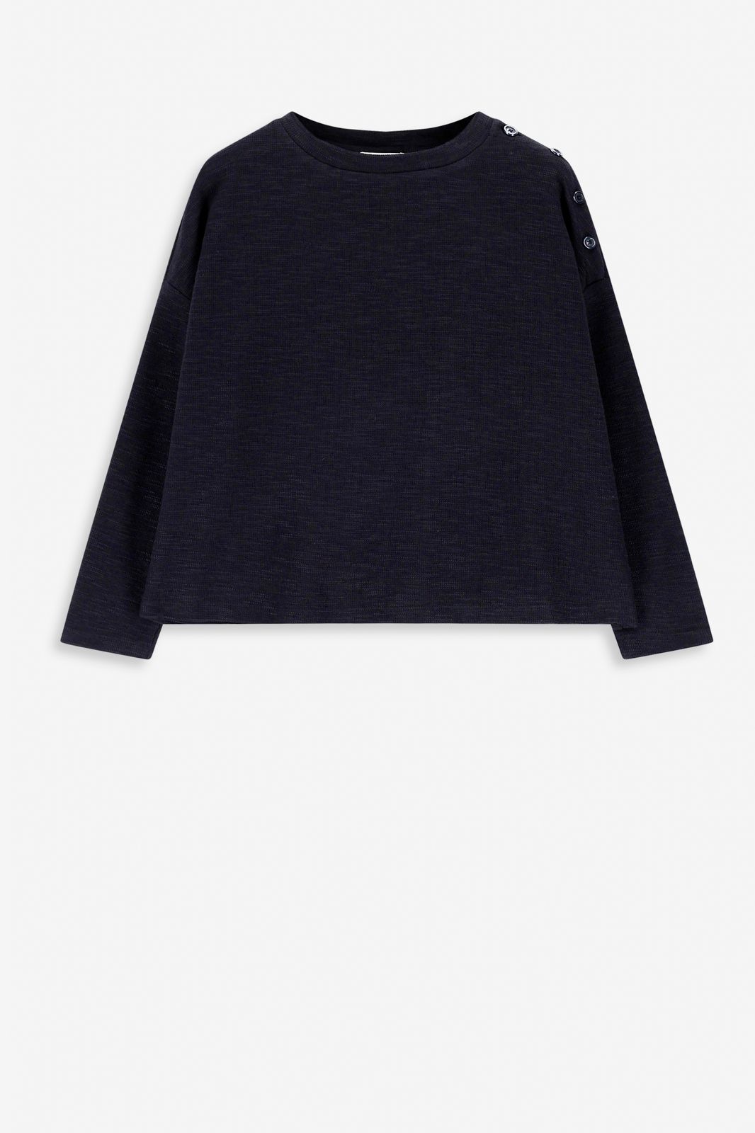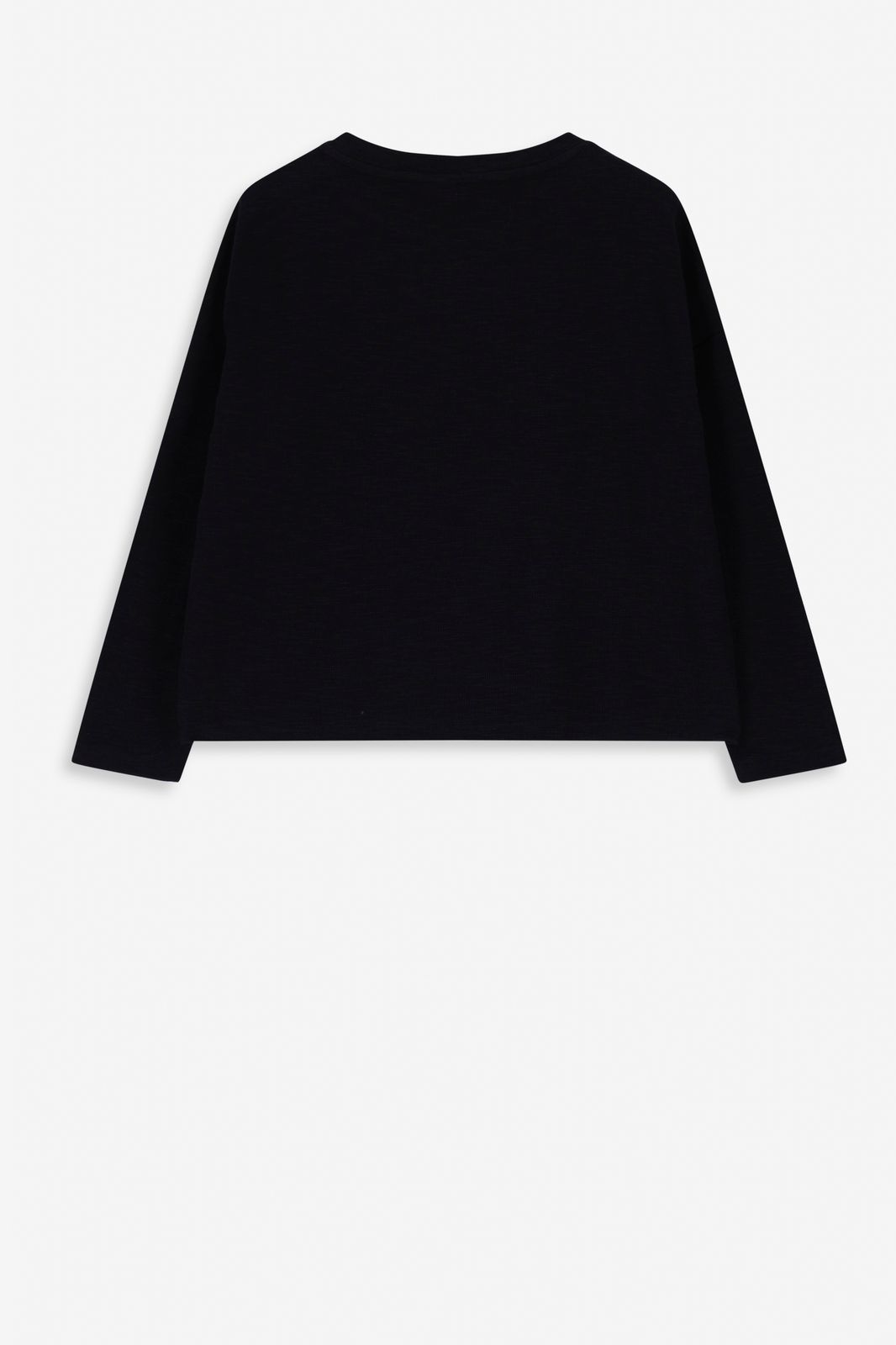 T-shirt noir avec détail noué de Sissy-Boy. Le T-shirt est doté de boutons sur l’épaule, il a des manches longues et une encolure ronde dans une coupe carrée. Matière : 90% coton, 10% polyester.