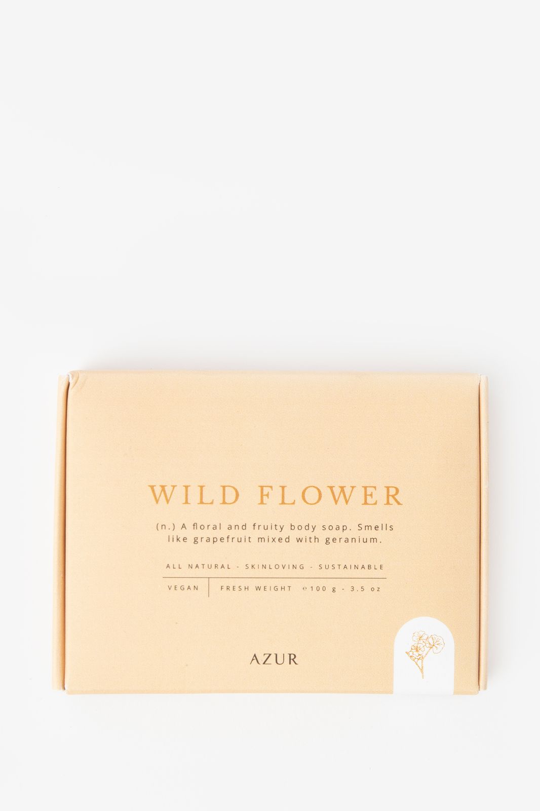 Ce savon Wild Flower de Azur est fait pour tous les amateurs de fleurs ! Le savon pour le corps a une senteur délicieusement fruitée et fleurie, avec une odeur de géranium et de pamplemousse. Entièrement vegan et durable.
