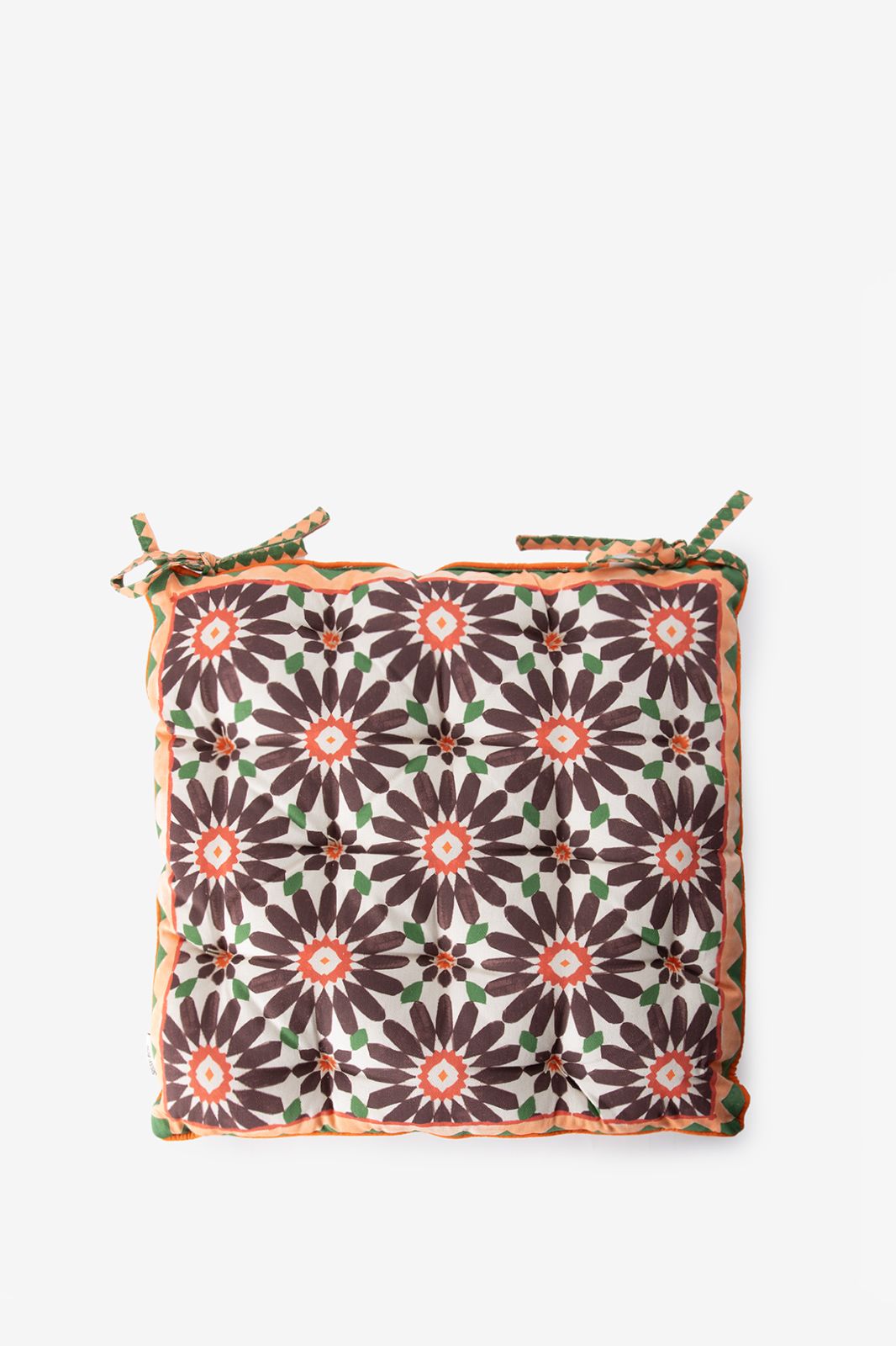 Coussin d'extérieur multicolore avec imprimé mosaïque et fleurs de Sissy-Boy. Ce coussin carré est orné de plusieurs couleurs et motifs. Les nœuds à l'arrière permettent d'accrocher facilement le coussin à une chaise. Dimensions : 40x40 cm. Composition : 100% coton.