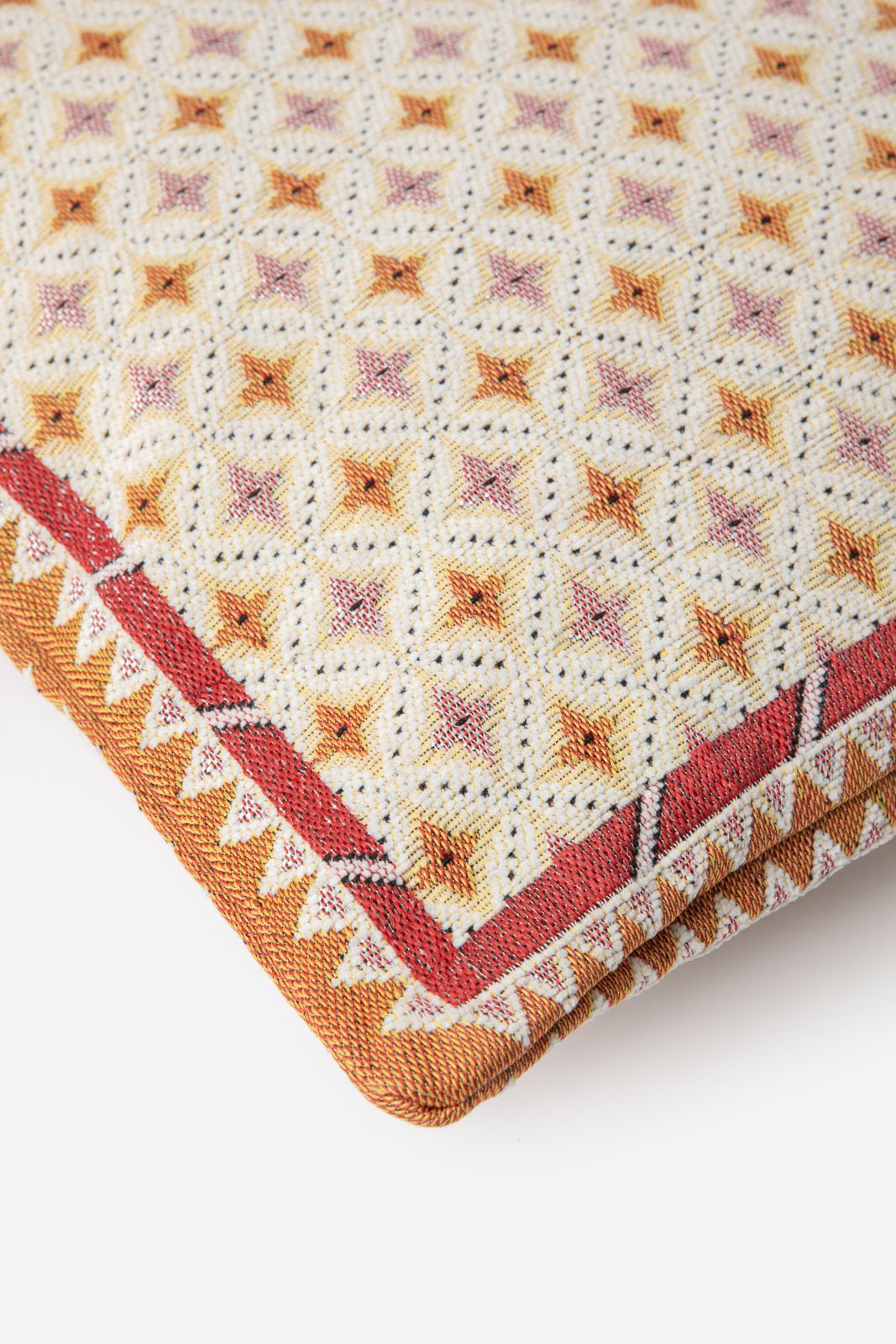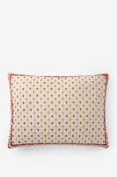 Coussin rose de Sissy-Boy. Le coussin a un motif à carreaux jacquard avec des détails tissés rose clair et orange. Dimensions : 45x60 cm. Composition : 80% polyester, 20% coton. Conseils d'entretien : laver séparément à 30 degrés, ne pas passer au sèche-linge, repasser à basse température, ne pas utiliser de produits contenant des agents de blanchiment et ne pas nettoyer à sec.