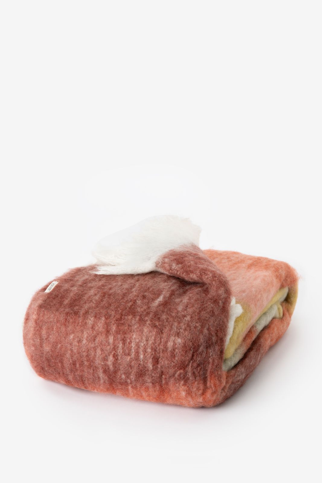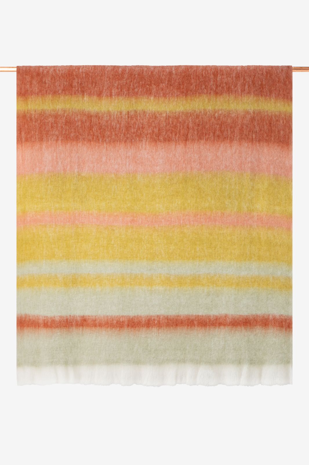 Couvre-lit multicolore de Sissy-Boy. Le couvre-lit a un motif rayé multicolore avec des nuances de rose et de jaune. Dimensions : 130x180 cm. Composition : 55% acrylique, 30% laine, 15% nylon.