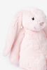Peluche lapin de la marque Jellycat. La peluche est en forme de lapin rose clair assis. Dimensions : 31x12x9 cm. Composition : 100% polyester.