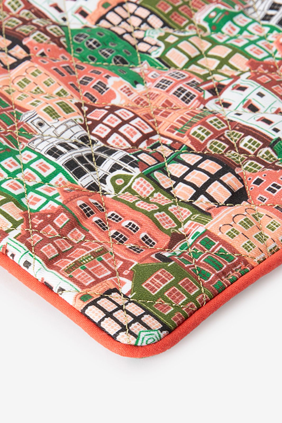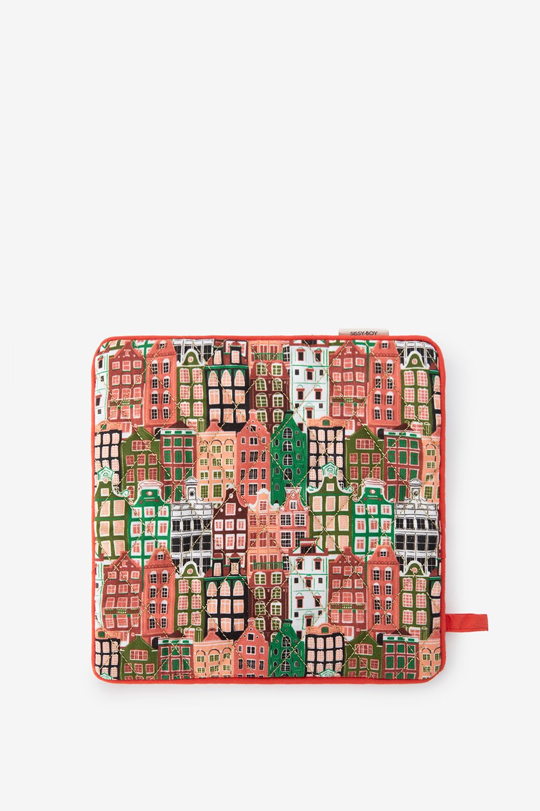 Manique multicolore avec un imprimé de maisons de canal colorées de Sissy-Boy. La manique est complétée par un bord orange en bas et est composée à 100% de coton.