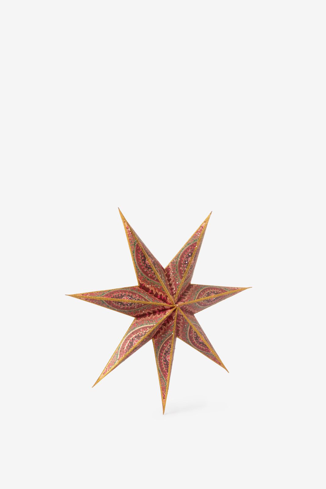 Étoile de Noël rouge de Sissy-Boy. L'étoile de Noël est ornée d'un imprimé coloré et de bords dorés. L'étoile a également un éclairage LED à l'intérieur pour une atmosphère encore plus chaleureuse. Dimensions : 40 cm. Composition : 100% papier.