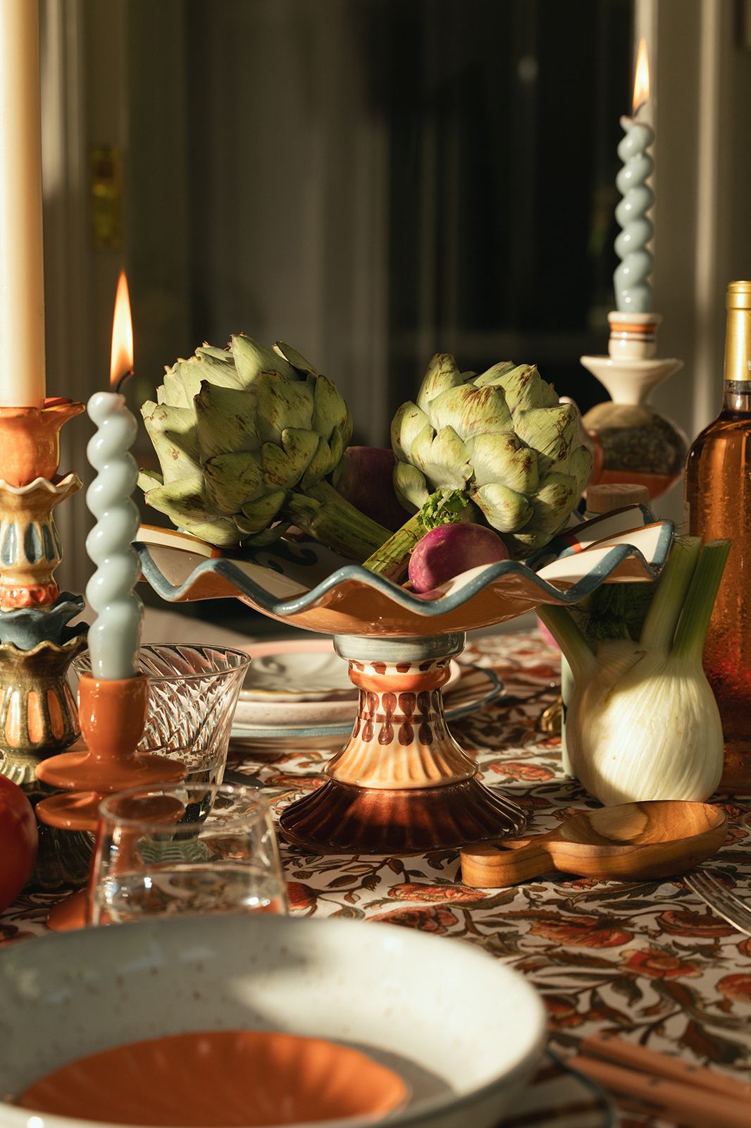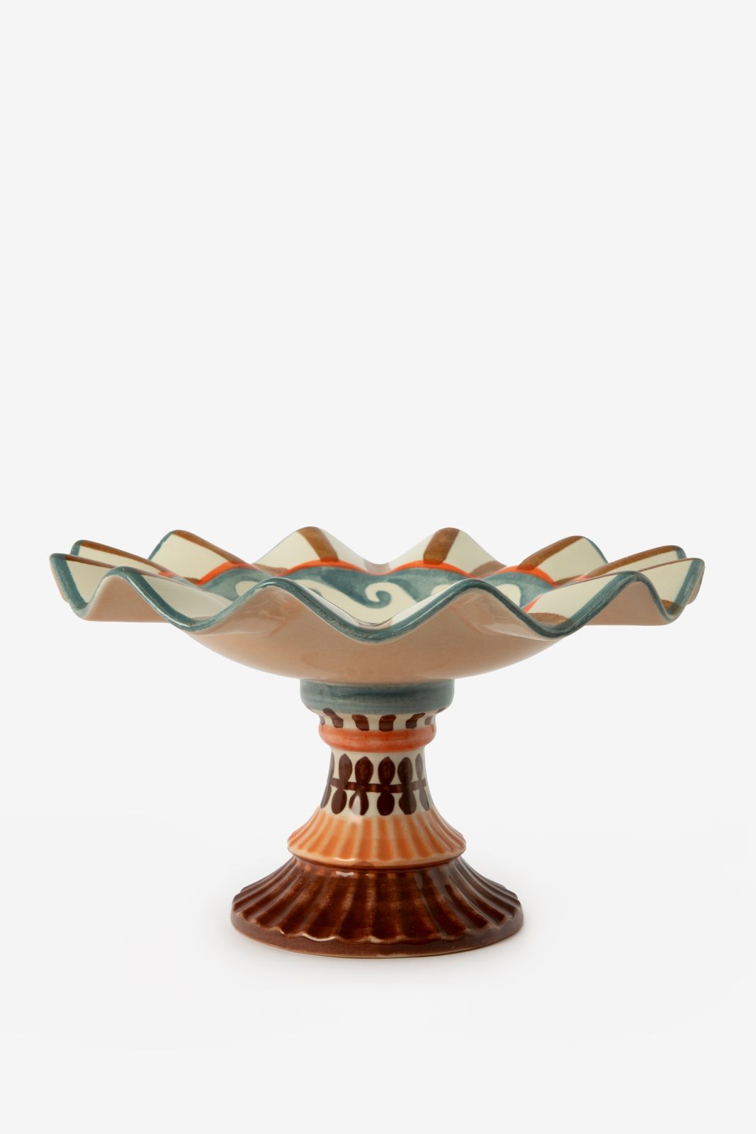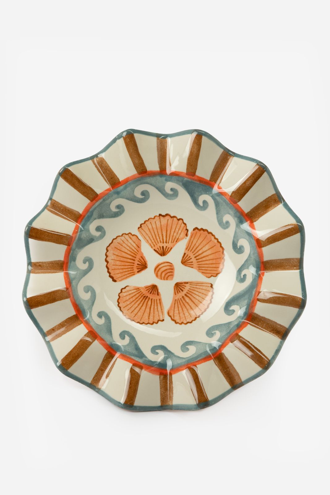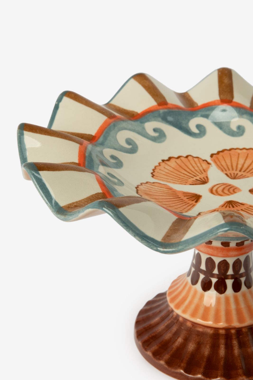Plat multicolore de Sissy-Boy. Le plat a un pied caractérisé par la superposition de formes et un motif composé de vagues et de coquillages sur la partie supérieure. Le plat a également un bord ondulé pour une touche romantique. Dimensions : 30x17,5 cm. Composition : 100% céramique.