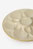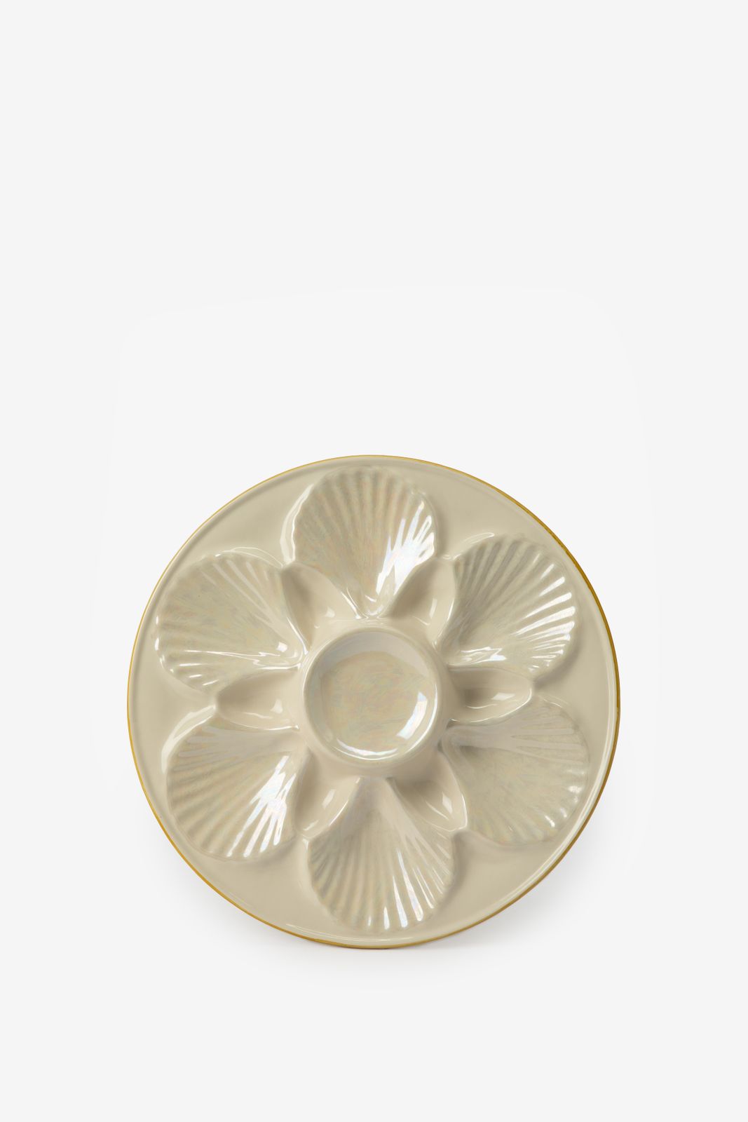 Plateau à huîtres blanc de Sissy-Boy. Le plateau est rond avec des formes de coquillage sur le bord. Sympa à utiliser pour les huîtres mais aussi pour d'autres amuse-bouches. Diamètre : 25 cm. Composition : 100% céramique.