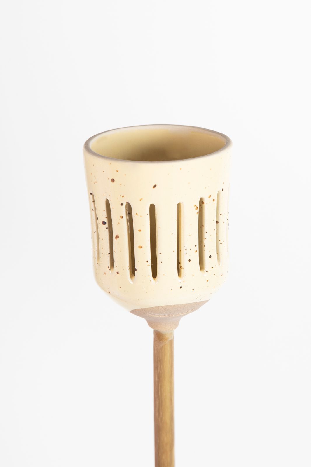 Ces torches jaune clair en céramique de Sissy-Boy sont jolies et elles permettent de créer un éclairage d'ambiance dans votre jardin. Mettez une bougie chauffe-plat dans la torche et profitez de la lumière. Les torches ont une tige en bambou qui peut être plantée dans le sol. En cas de mauvais temps, nous vous conseillons de rentrer les torches pour en profiter plus longtemps. Attention : en ligne, les torches sont uniquement vendues par deux. Vous en souhaitez une seule ? Alors, venez dans l'un de nos magasins. Matières : céramique, bambou. Dimensions : 8x8x90 cm.