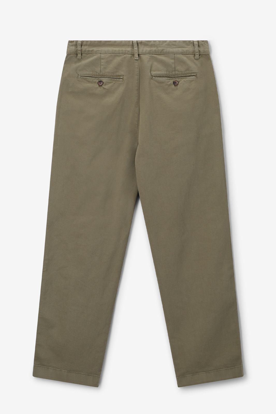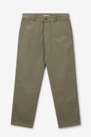 Chino vert foncé de Sissy-Boy. Le pantalon a une taille mi-haute, deux poches latérales, deux poches passepoilées à l'arrière et se ferme avec un bouton et une fermeture éclair. 100% coton.
