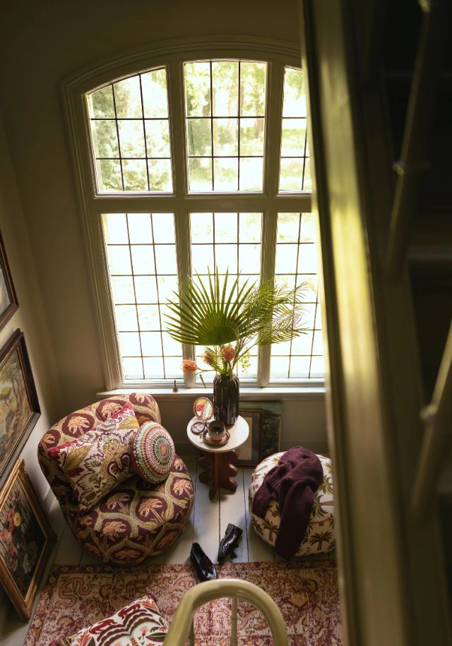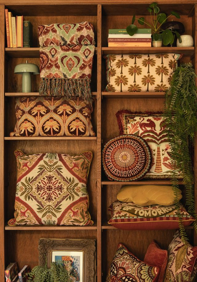 Les couleurs sont riches et affirmées : des tons profonds côtoient des accents plus clairs, des imprimés qui dialoguent entre eux et de subtils motifs animaliers qui apportent du caractère. Chaque pièce ressemble à une trouvaille personnelle, faite pour être vécue, conservée et transmise.